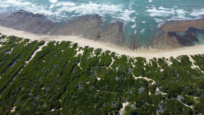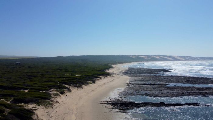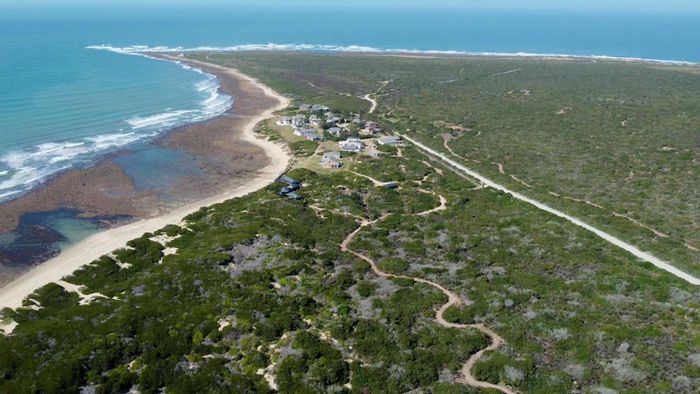 Coastal retreat with white beaches, rock pools and dramatic sunsets 4km from Gouritzmond; 1km private seafront, income-generating cottages and freshwater dams.