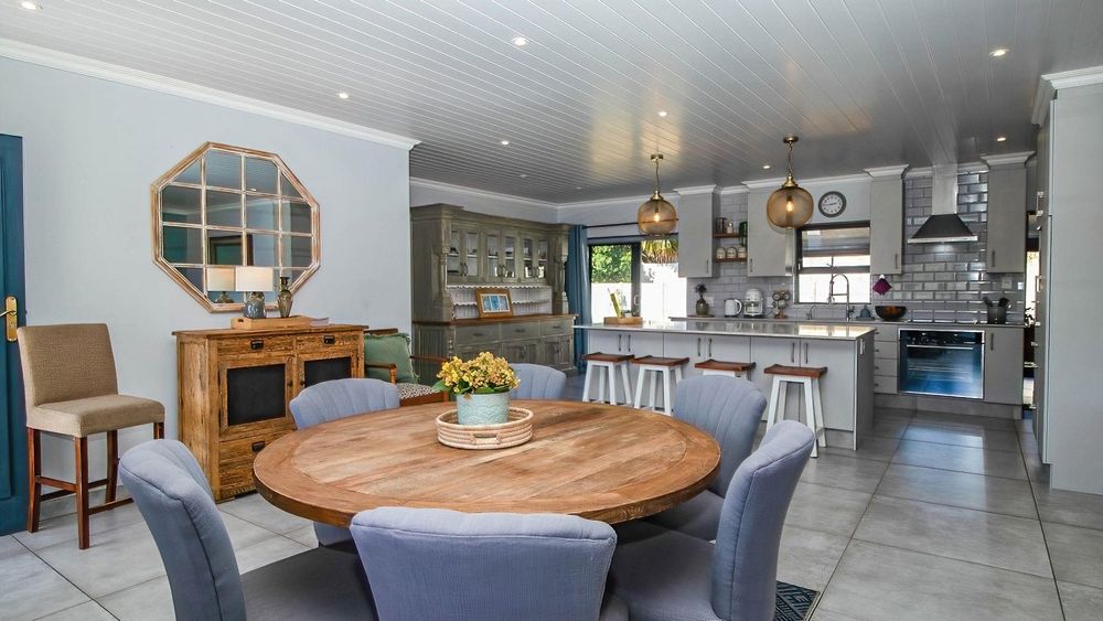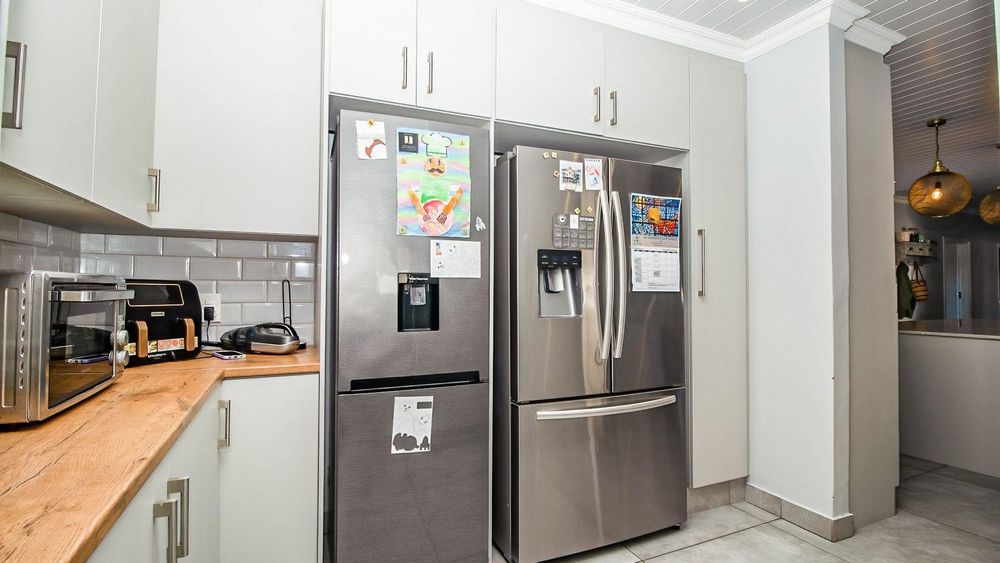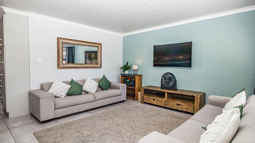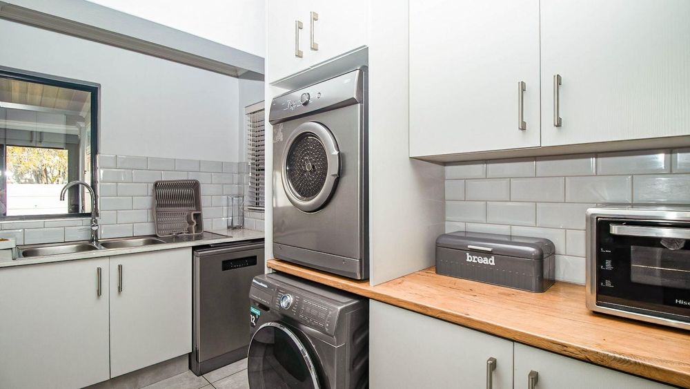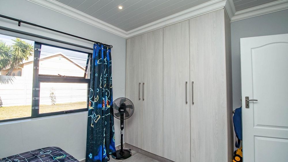 Entertain with ease in the inviting braai room, featuring elegant stag doors that seamlessly connect indoor and outdoor living spaces. The backyard is a haven for children and pets, with lush grass providing plenty of space to play and relax, creating the perfect setting for family gatherings and outdoor enjoyment.