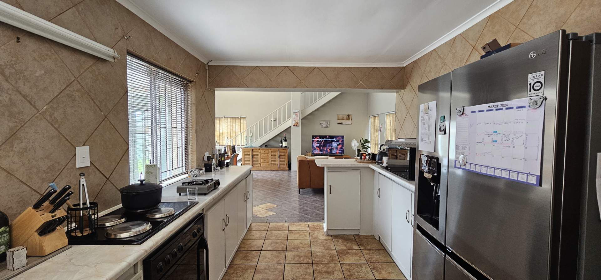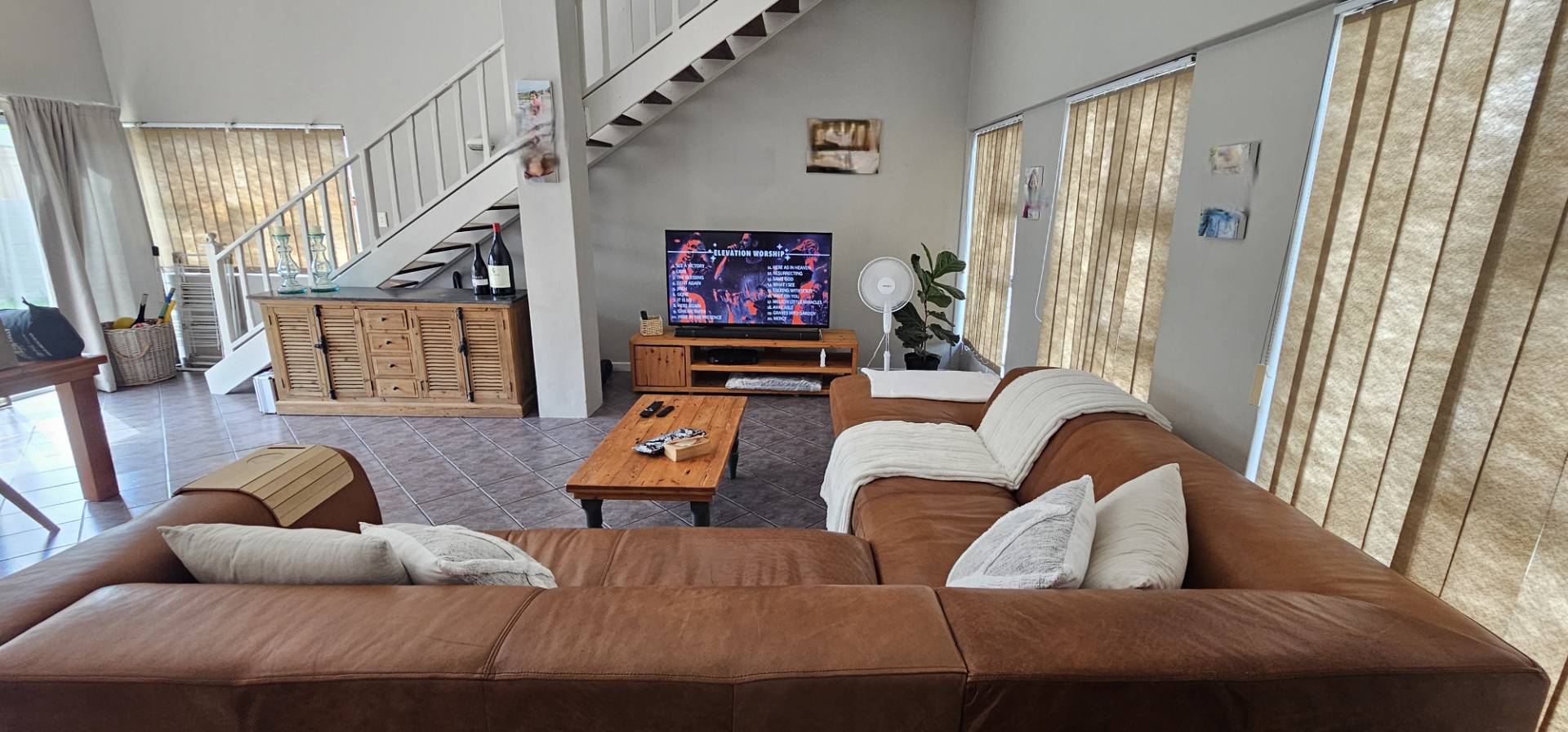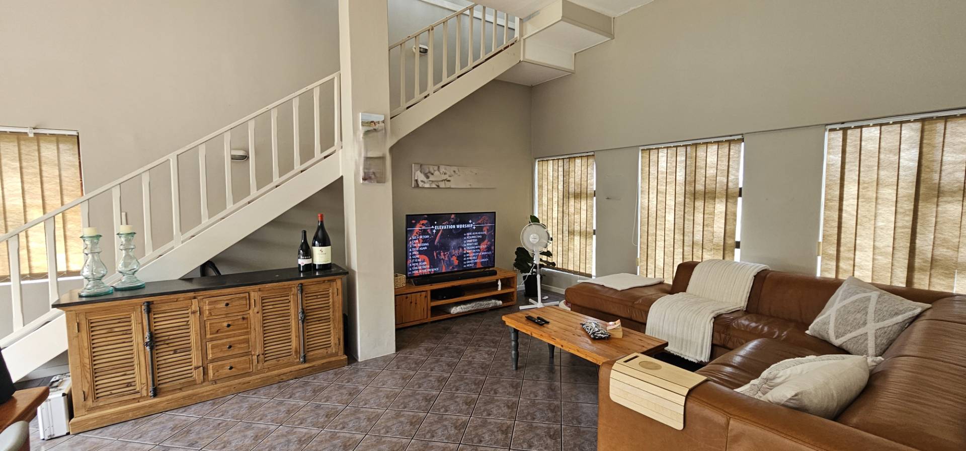 Designed with ease of living and entertaining in mind, the ground floor features two expansive living areas. These spaces seamlessly extend to the enclosed backyard through sliding doors, creating an ideal setting for gatherings. The outdoor area is perfect for hosting events with a charming braai area and shade netting, allowing you to relax and enjoy the fresh air.