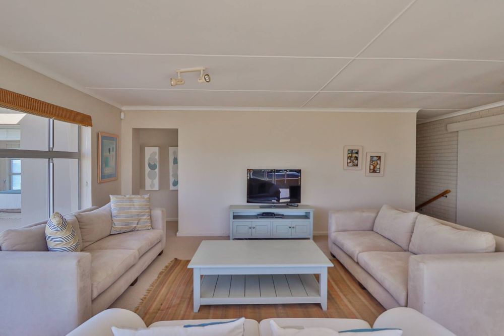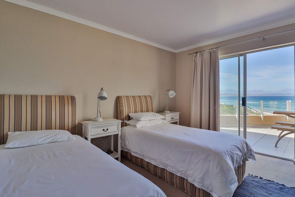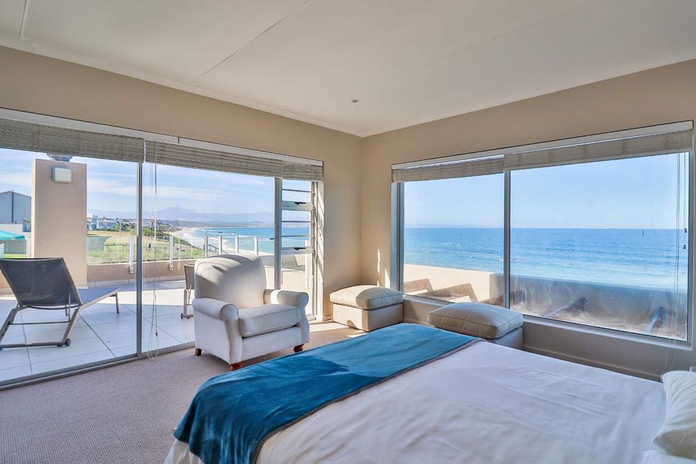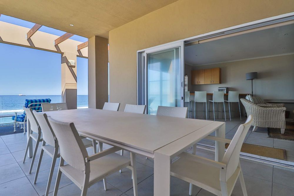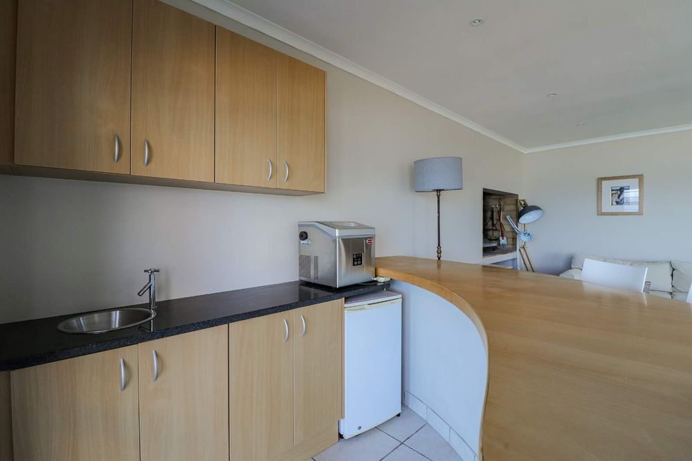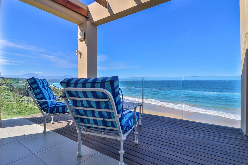 The ground floor also features a guest suite with an en-suite bathroom and direct access to an open stoep area overlooking the sea.