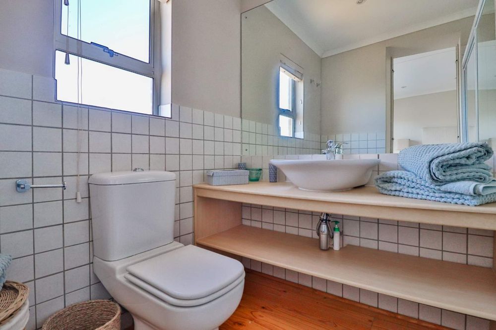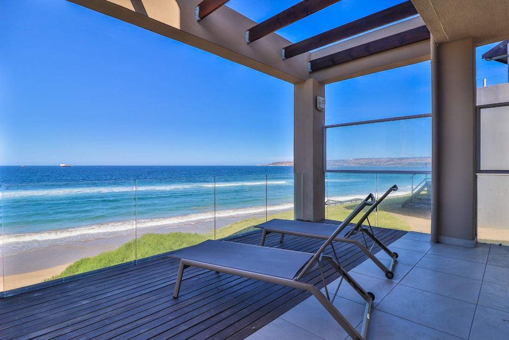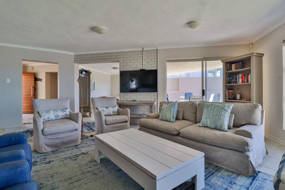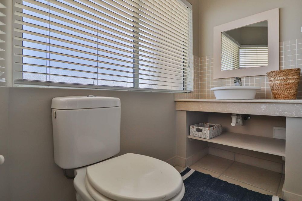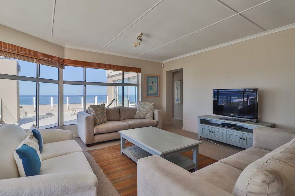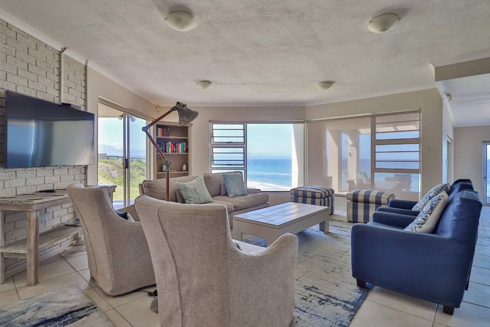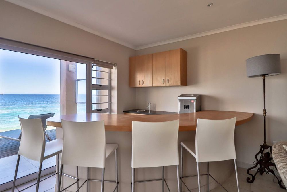 The ground floor also features a guest suite with an en-suite bathroom and direct access to an open stoep area overlooking the sea.