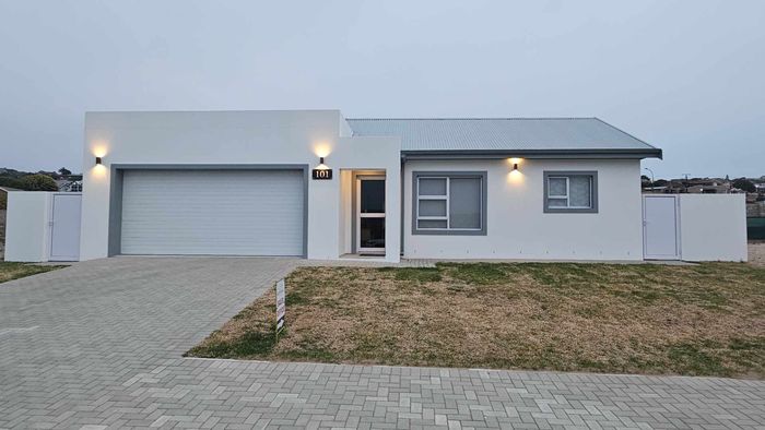 Embrace relaxed coastal living in Fraai-Uitsig, just 4 km from Klein Brak beaches, with a private planted garden behind 1.8m walls — 2 beds, 2 baths, 2 garages.