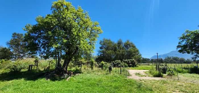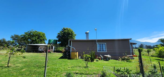 Farm-style living at the Outeniqua foothills in Ruiterbosch, 26km from Hartenbos — fertile 1.05ha with established fruit and nut trees, refurbished three-bedroom home and antique wood-burning stove.