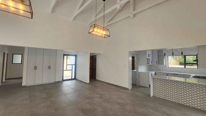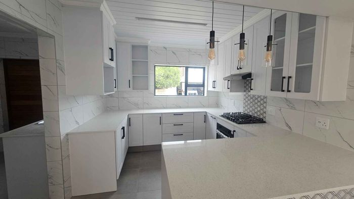 Coastal living in Great Brak River with panoramic views and dual entertainment zones — indoor braai and sunny outdoor area. Turnkey modern kitchen, three bedrooms, two bathrooms, double garage.