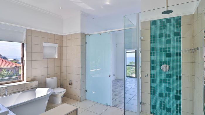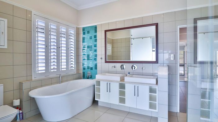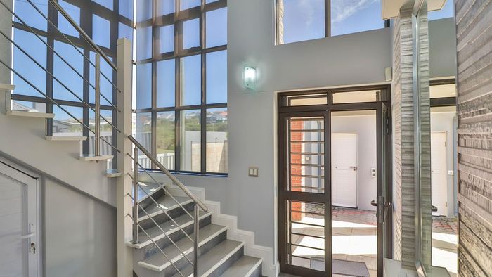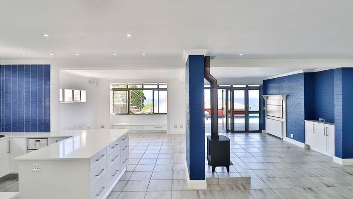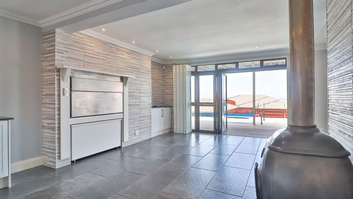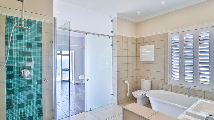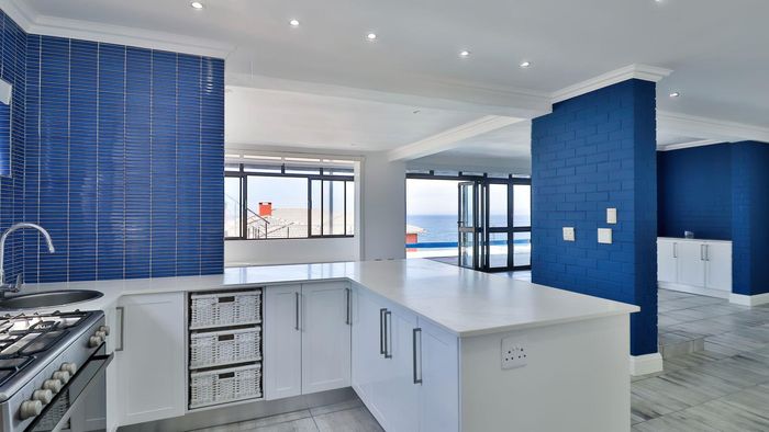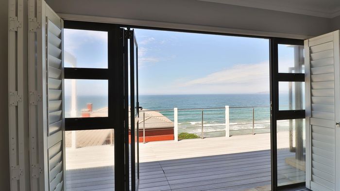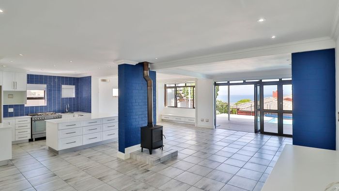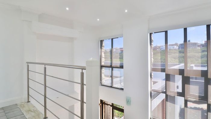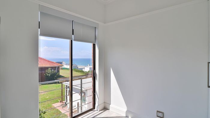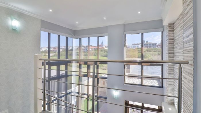 Coastal lifestyle and investment in quiet Reebok between George and Mossel Bay, sweeping sea views and infinity pool merging with the ocean. Two duets, 8 beds, 6 baths.
