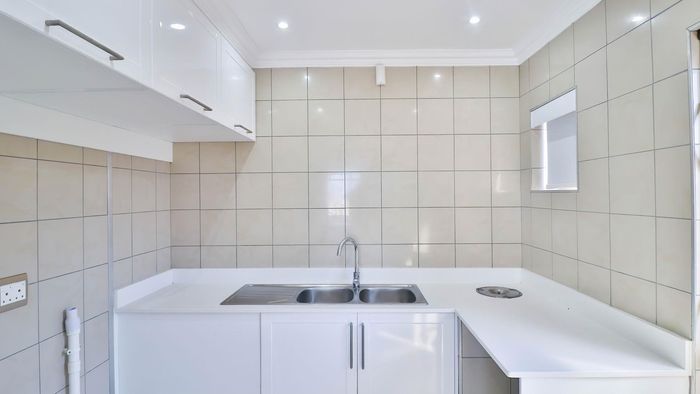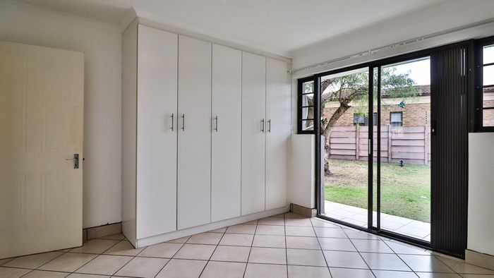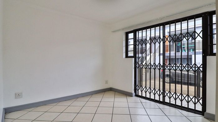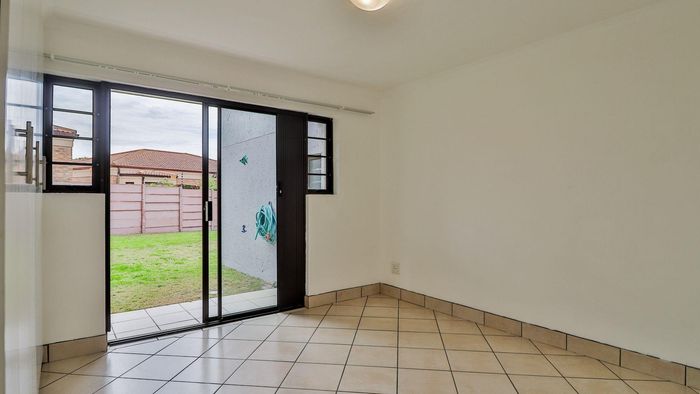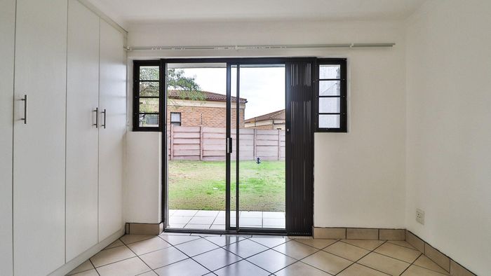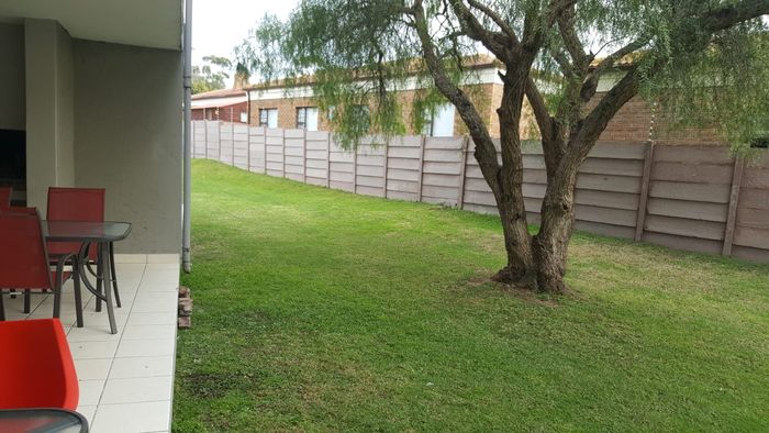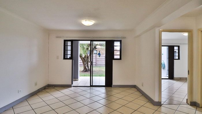 Private ground-floor apartment with open-plan living flowing to a verandah, direct lawn and braai area — secure complex just 1.5 km from shops. Ideal investment; 2 beds, 1 bath.