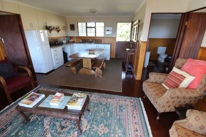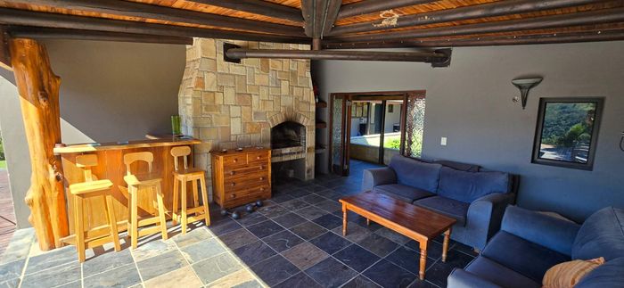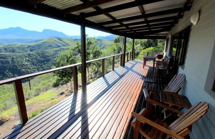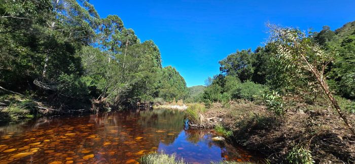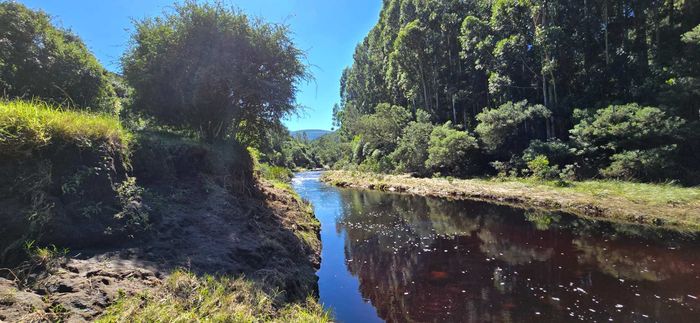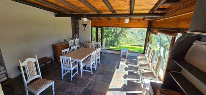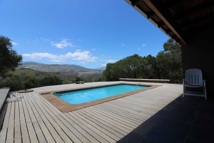 Riverside country living amid indigenous forest and abundant birdlife in Ruiterbos overlooking the Leeuwekloof — 1km river frontage, panoramic deck and pool, pizza-oven entertainment room, 94ha with 11ha premium arable land.