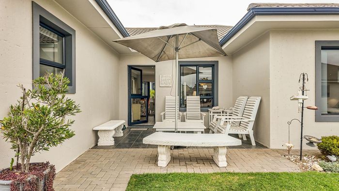 Coastal retirement living near Diaz Beach in a secure village, with communal dining and on-site care. Single-level home with indoor braai, sunny courtyard, two beds, two baths, double garage.