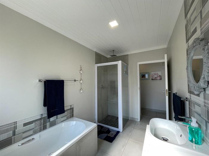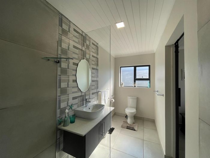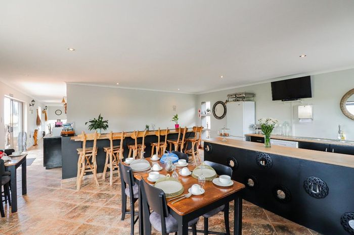 Coastal hospitality retreat in Dana Bay Nature Conservancy, steps from shops and restaurants. Balcony with built-in braai and sea views; ten en-suite bedrooms plus three flats — ideal for boutique B&B.