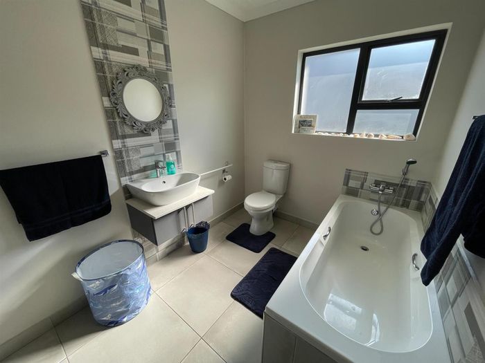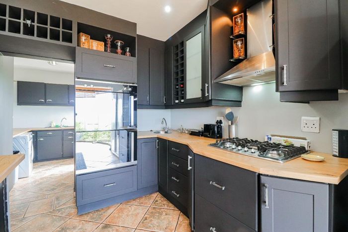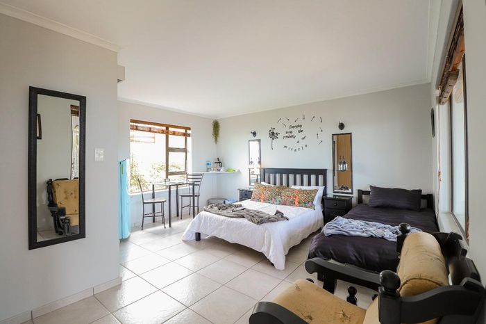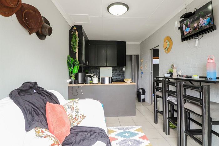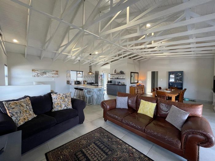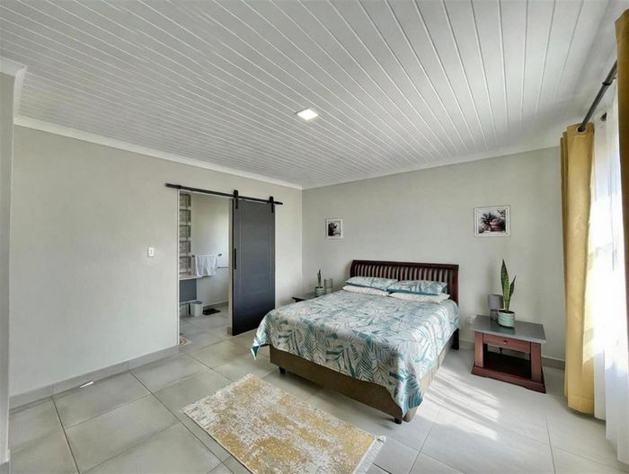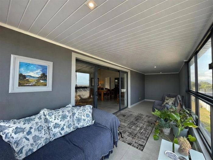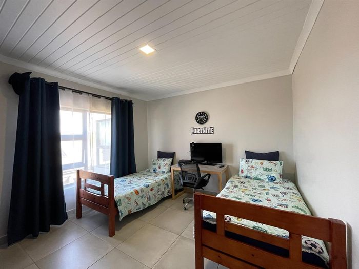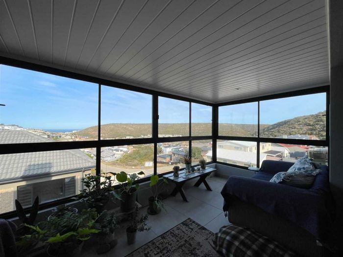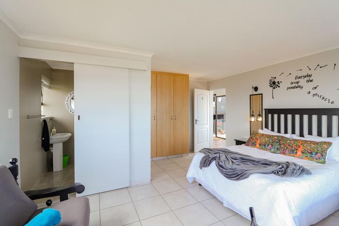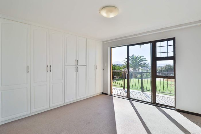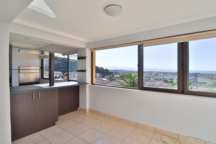 Coastal family escape in Island View, Mossel Bay — enjoy distant ocean and Outeniqua mountain sunrises from an enclosed veranda with built-in braai; three bedrooms, two bathrooms, double garage.