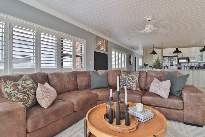 Relaxed Garden Route living in Hartenbos — stroll to the Blue Flag seafront, enjoy a private braai deck; includes a self-contained one-bedroom flat and four bedrooms.
