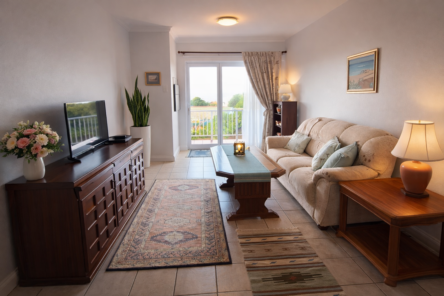 The heart of the appartment is a seamless open-plan living area. The kitchen is both functional and stylish, featuring ample cabinetry to suit permanent residency or lock-up-and-go holiday convenience.