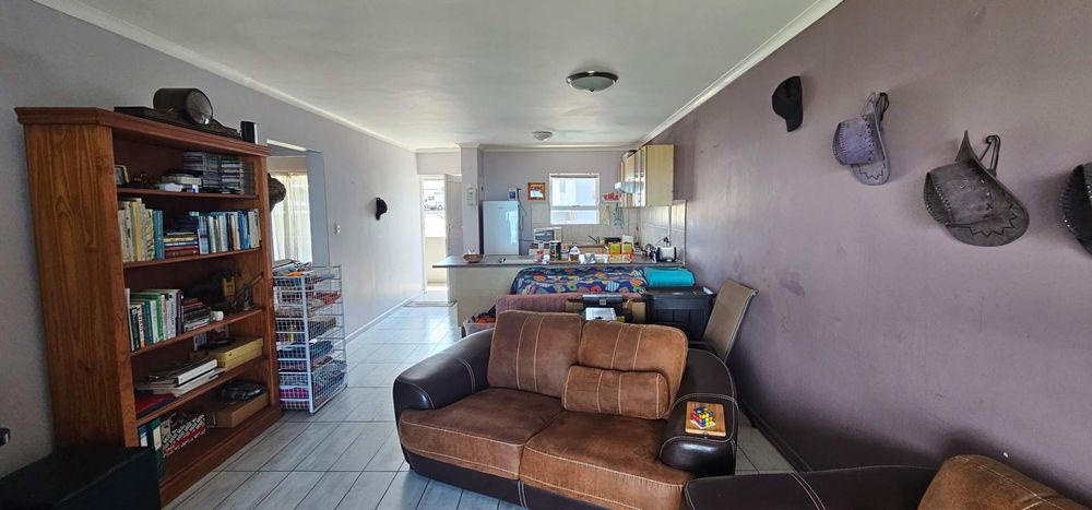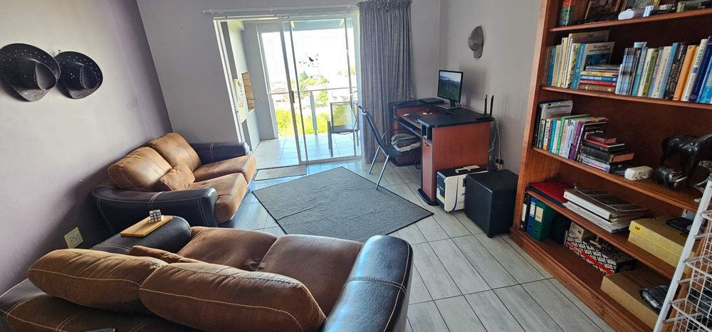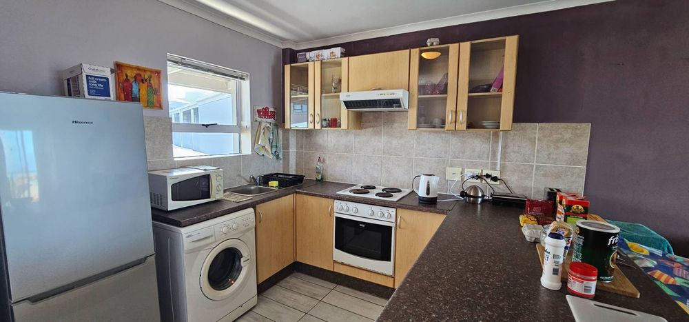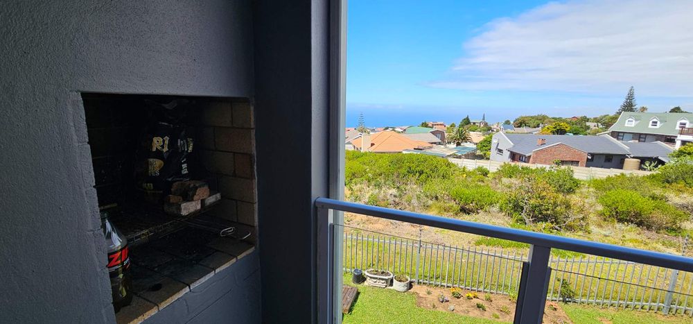 Enjoy the seamless flow of the open-plan dining room and lounge, which adjoins a contemporary kitchen. This inviting space extends onto a covered balcony featuring a built-in braai area, perfect for entertaining while taking in the stunning sea views.