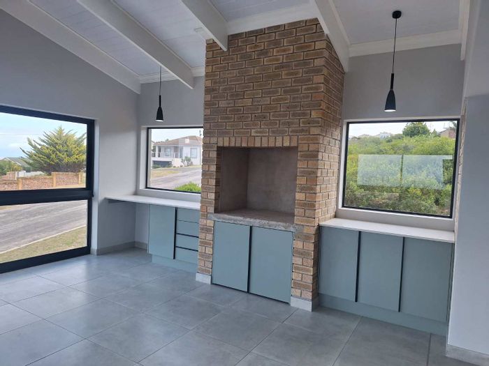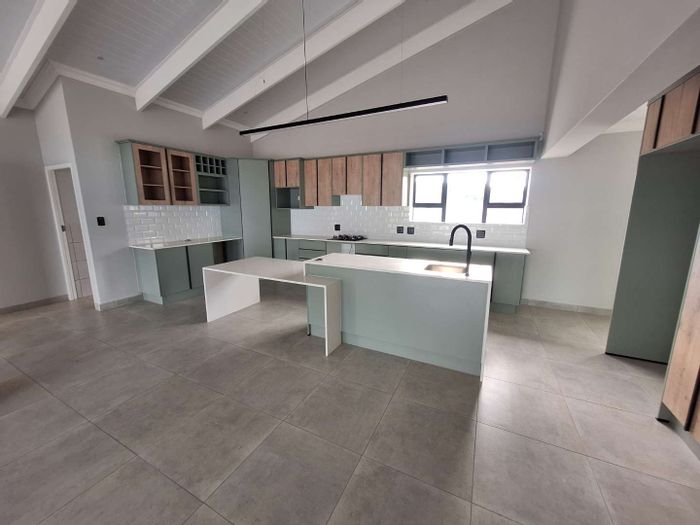As you step inside, you are greeted by an expansive open-plan living area, characterized by its high ceilings and abundant natural light. The living room flows effortlessly into the dining area, which boasts a built-in braai, ideal for entertaining guests or enjoying cozy family meals. The partially open kitchen is thoughtfully designed with ample cabinetry, a gas hob, and an electric oven, complemented by a convenient scullery/laundry area.