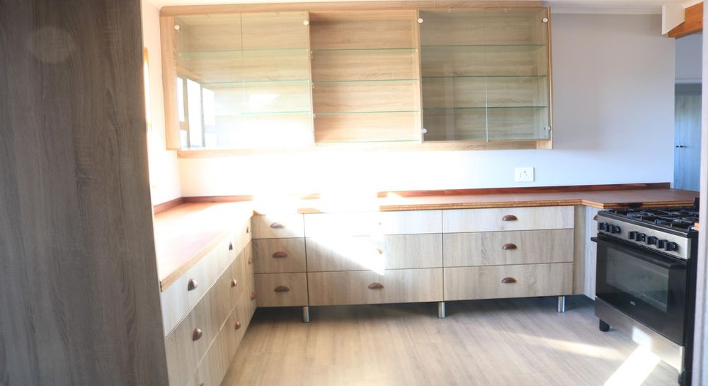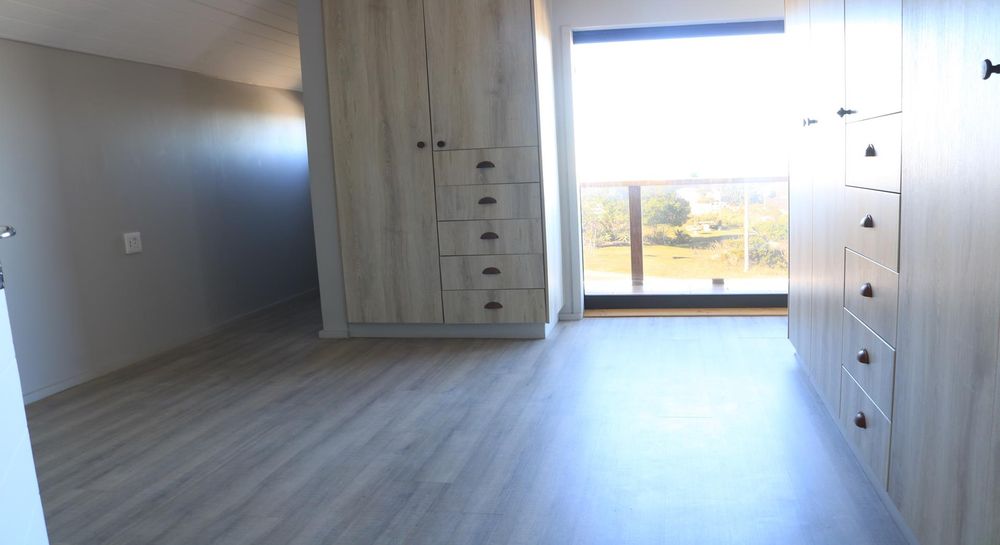 7 Bedroom house for sale in Dana Bay. This double-story house offers separate living spaces on the ground floor and second floor. The ground floor features a spacious open plan living room, dining room, and kitchen with a scullery/laundry area. It also includes 3 bedrooms, 2 bathrooms (one en-suite), and ample cupboard space.