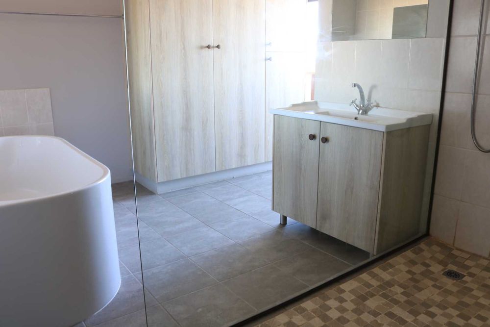 The second floor has its own entrance accessible through the garage. It boasts a large open plan living room, dining room, and kitchen with a scullery and laundry area. From the balcony, you can enjoy breathtaking ocean views. Additionally, there are 4 generously-sized bathrooms (two en-suite) and a guest bathroom.