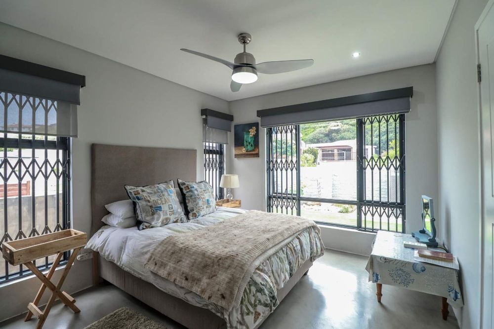 The upper level is designed for enjoyment and relaxation, featuring an open-plan kitchen that flows into the dining room, TV room, and living area—all with breathtaking sea views. Host memorable gatherings in the dedicated braai room or unwind in the gym area. A guest bathroom adds convenience for visitors.
