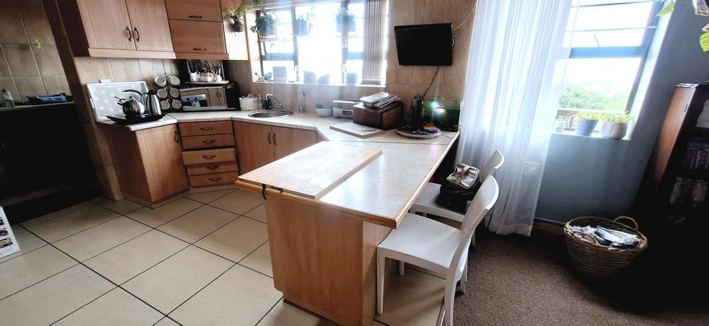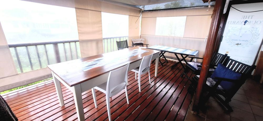 Upon entering, you'll be greeted by a lovely foyer that seamlessly flows into the open-plan living and dining area with built-in braai, complete with a modern kitchen. This inviting space is perfect for family gatherings and entertaining guests. The living room extends to a large covered stoep, featuring a bar area and breathtaking ocean views – an ideal spot to unwind and enjoy the coastal breeze.