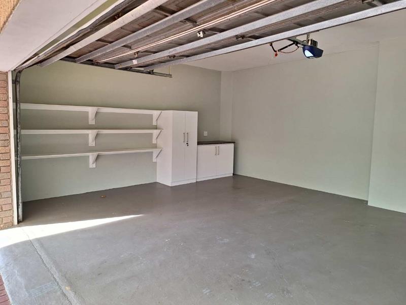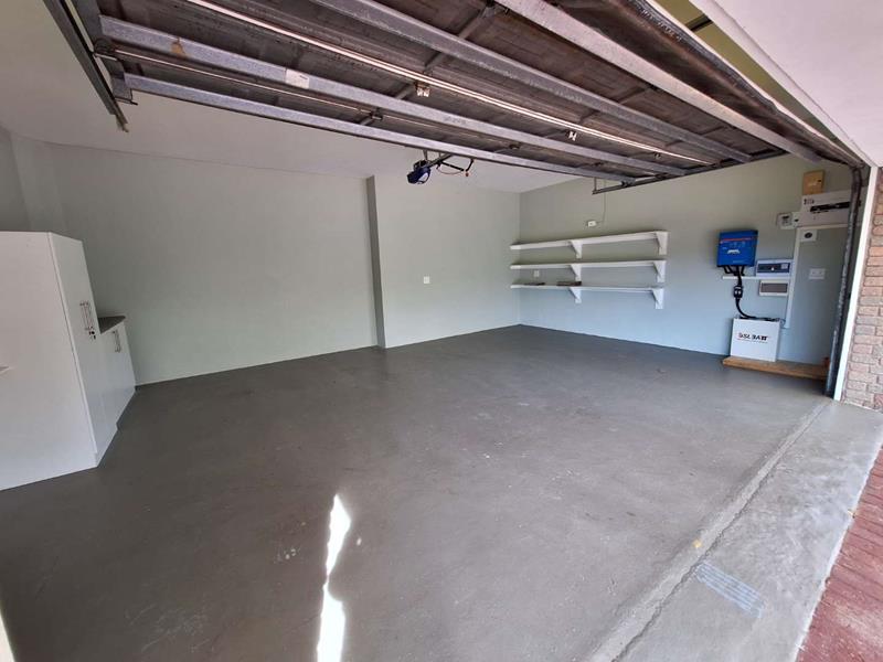 Practical features include an extra-large double garage with extensive built-in cupboards, perfect for storage. The garden extends to the adjacent greenbelt, inviting local wildlife such as bush buck to wander into your yard, providing a serene connection to nature.