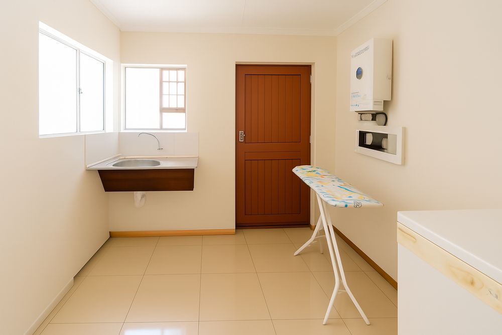 Outside, enjoy a beautifully landscaped garden and additional storage space under the house. This home is equipped with 12 solar panels and 5KVA batteries, ensuring energy efficiency. Two electric geysers provide ample hot water supply. For added security, the property is fitted with beams and an alarm system.