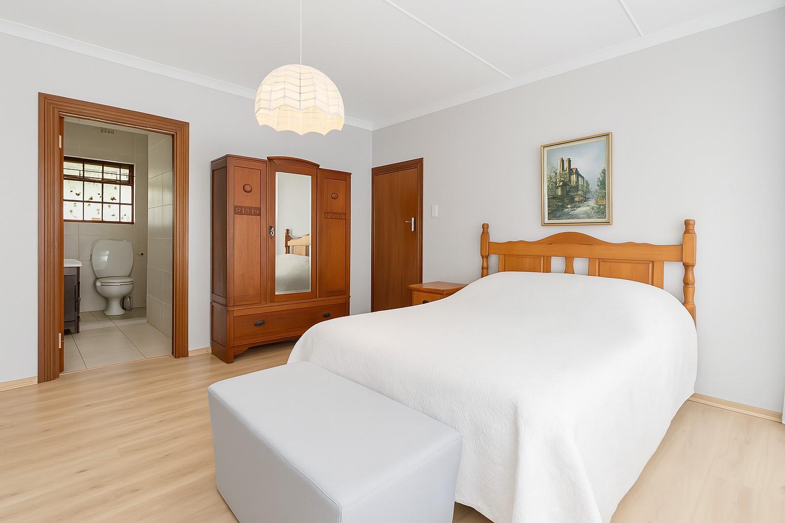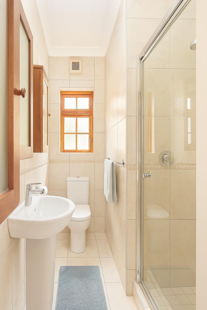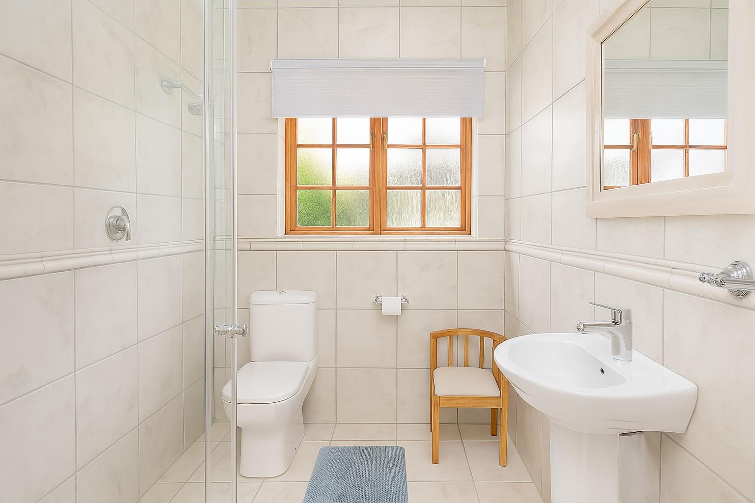The sleeping quarters comprise three well-appointed bedrooms, including a master suite with an en-suite bathroom, ensuring privacy and comfort. A guest bathroom serves the remaining bedrooms and visitors.