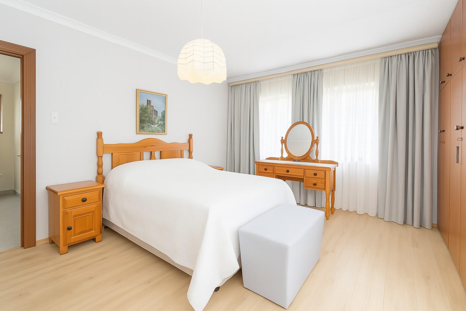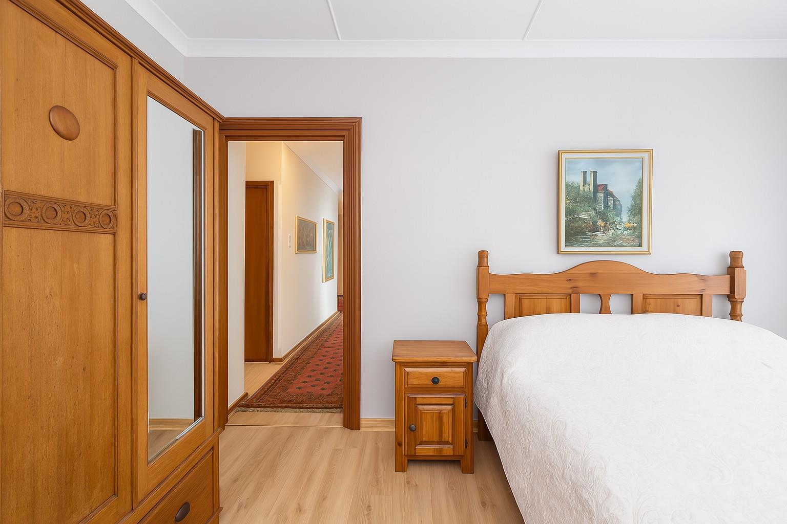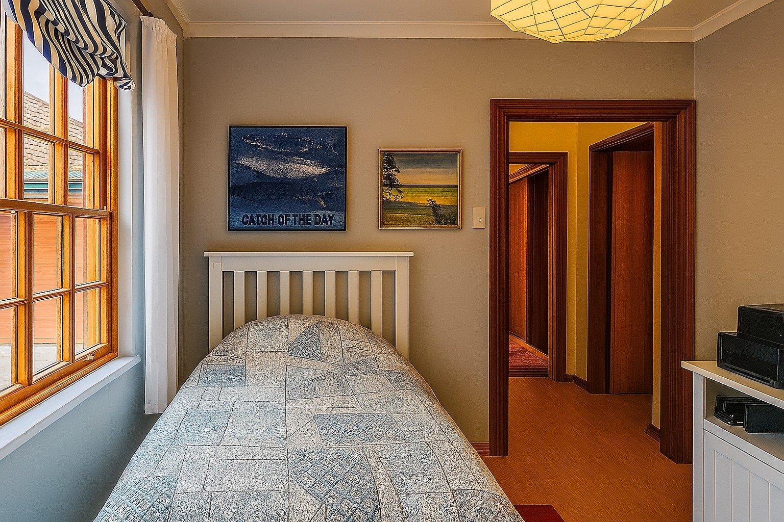 The sleeping quarters comprise three well-appointed bedrooms, including a master suite with an en-suite bathroom, ensuring privacy and comfort. A guest bathroom serves the remaining bedrooms and visitors.