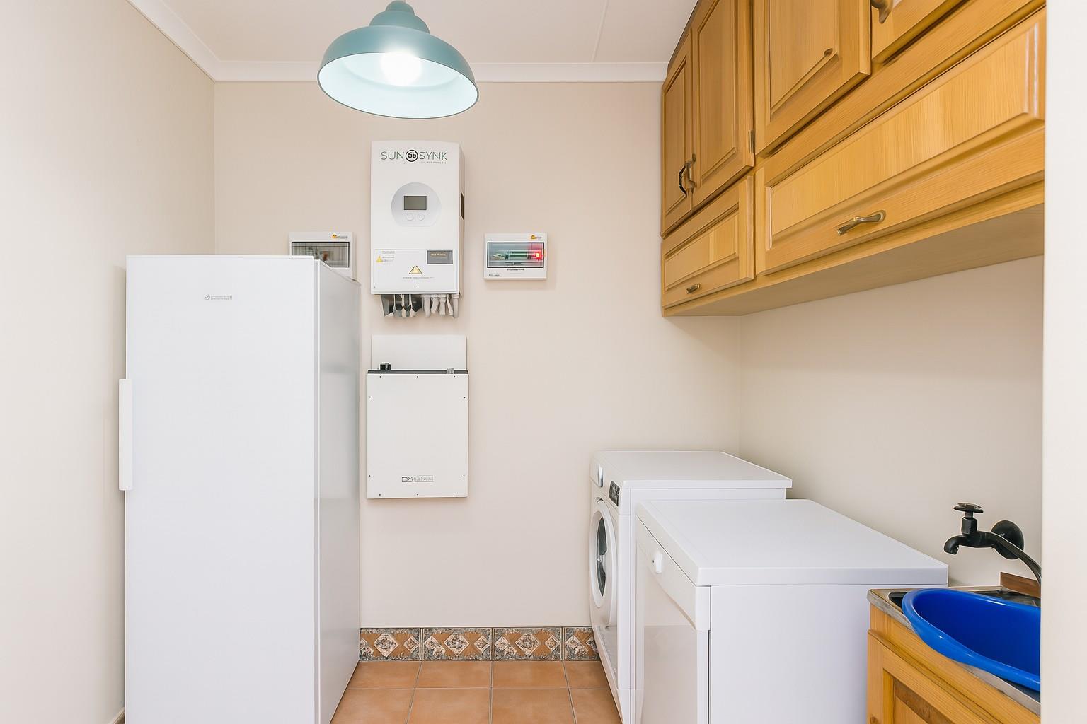 The property is equipped with modern conveniences such as solar panels with a 5Kva inverter and two water tanks, ensuring sustainability and cost efficiency. A double garage provides secure parking, while a large Wendy house offers versatile space that can be transformed into an office or workshop, with enough room to accommodate a Venter trailer.