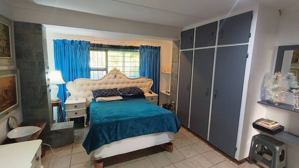The second part of the house boasts its own private entrance, ensuring privacy and independence. This section includes a living room with a built-in braai and an open-plan kitchen that includes both a scullery and laundry area. A spacious bedroom with an en-suite bathroom opens onto its own patio, while a second large bedroom also features an en-suite bathroom. This unit offers a covered parking space, enhancing convenience and security.