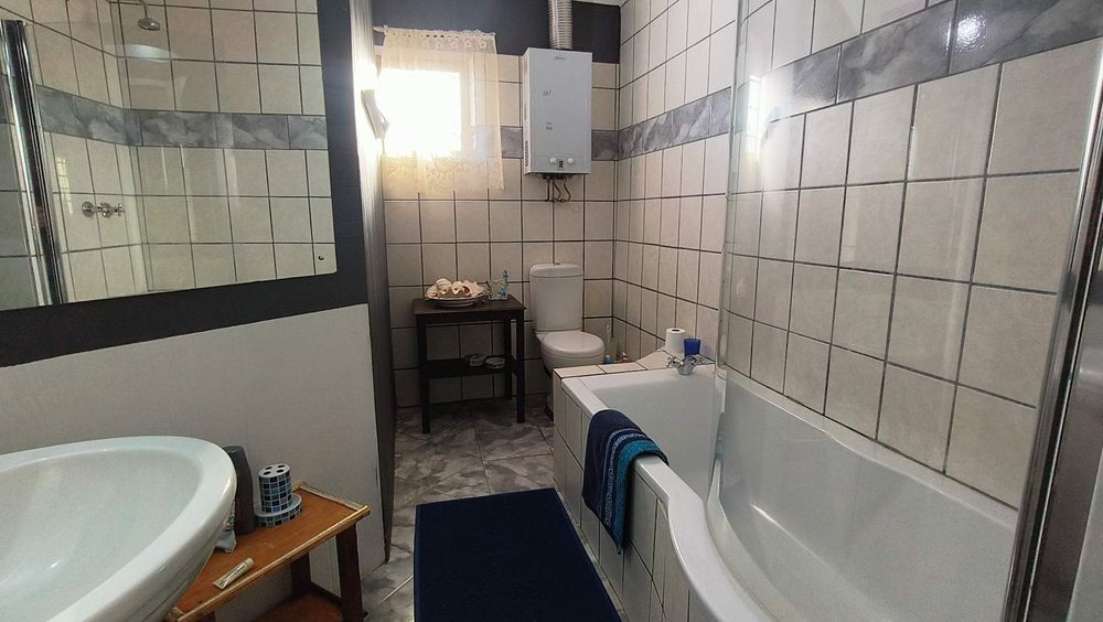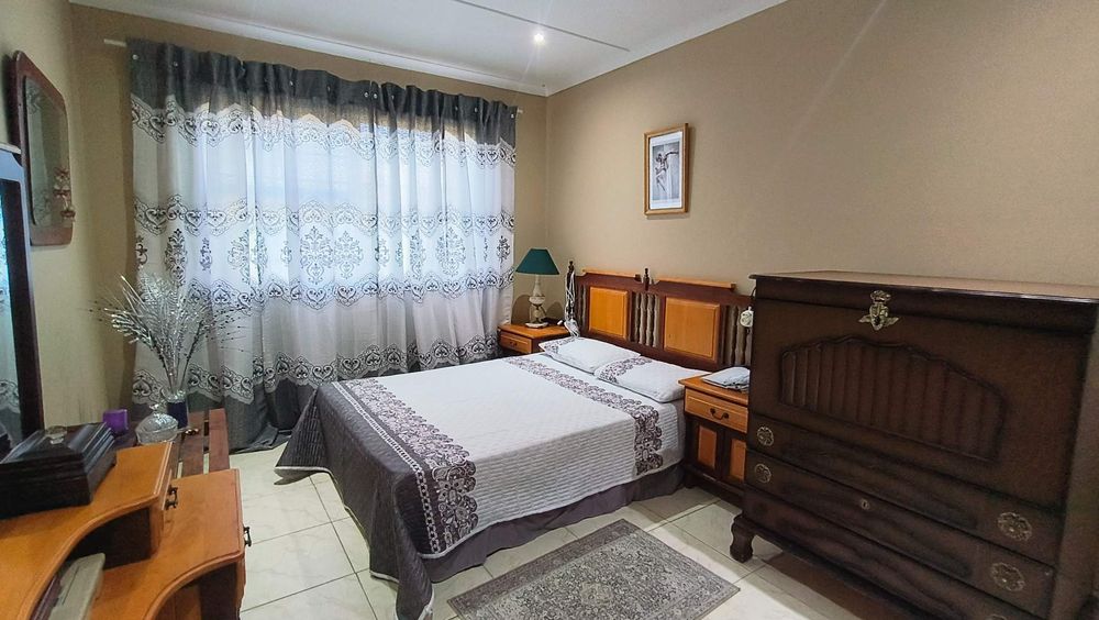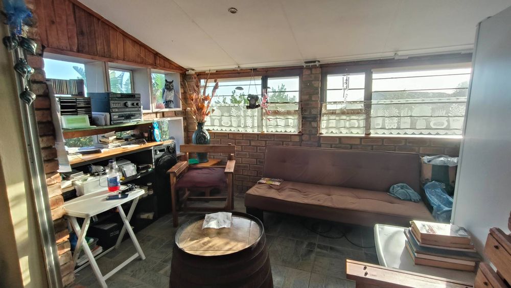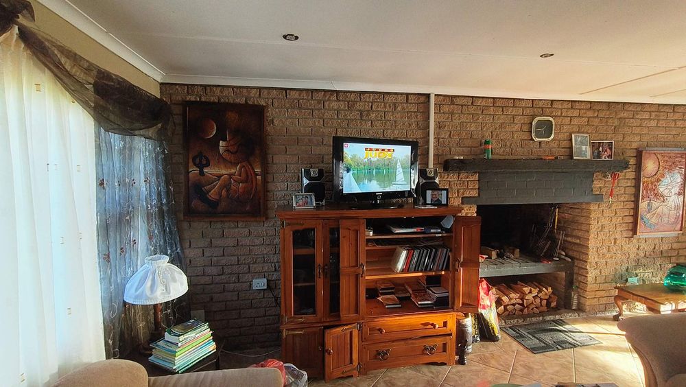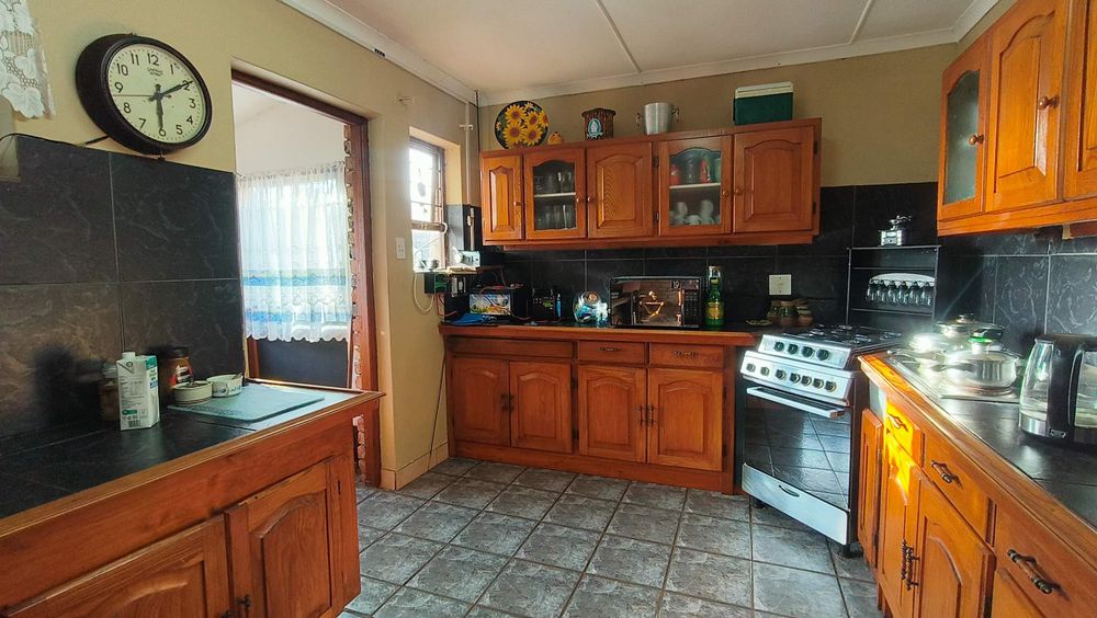 The first section of the house features a cozy living room complete with an indoor braai, seamlessly connecting to an open-plan kitchen equipped with a scullery. An enclosed stoep serves as an additional living area or a charming dining room, offering flexibility for family gatherings or entertaining guests. Step outside onto the patio to enjoy lovely views over the meticulously maintained garden, creating a serene atmosphere for relaxation.