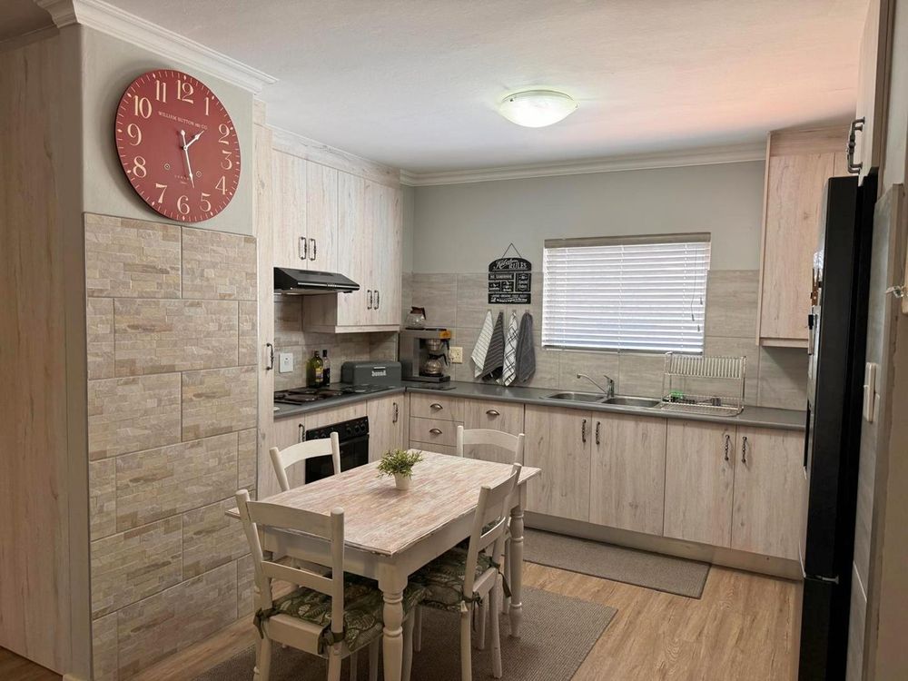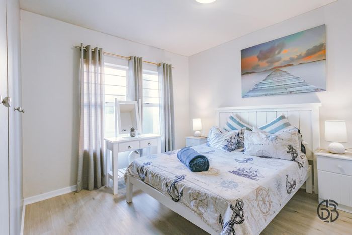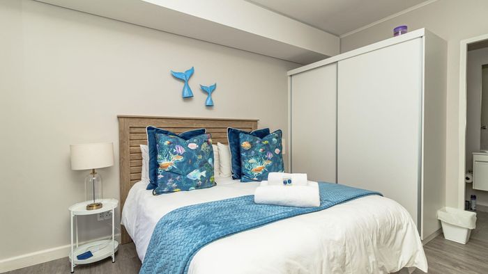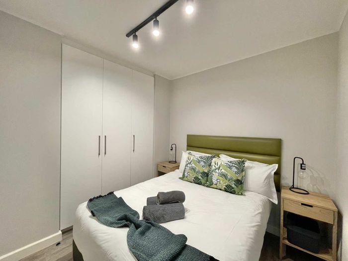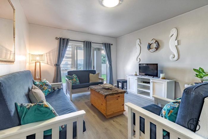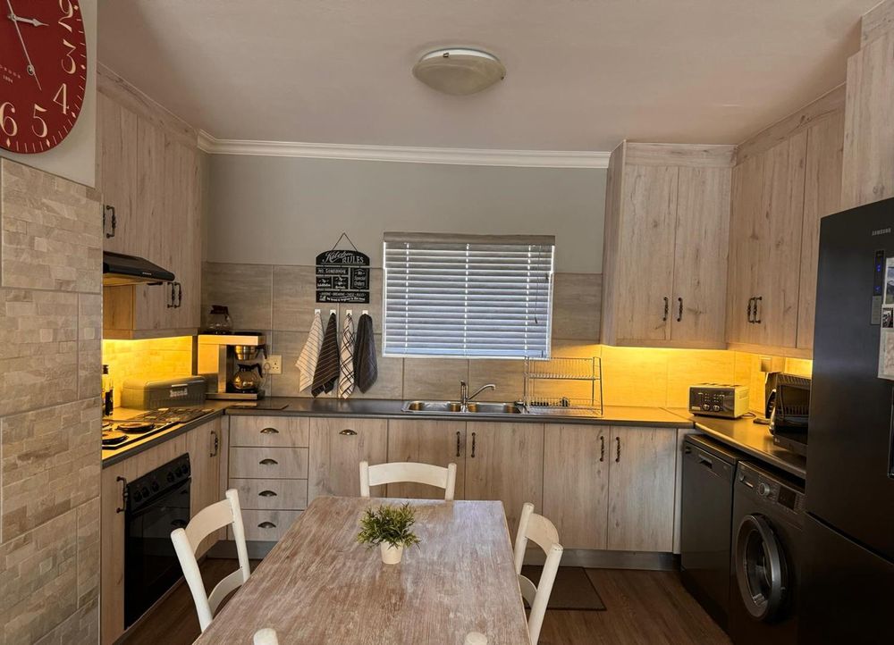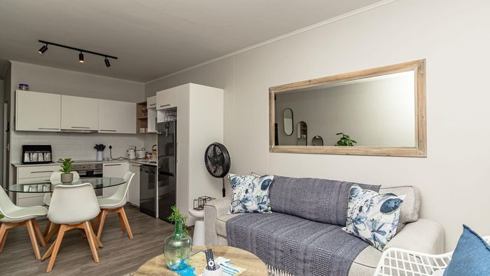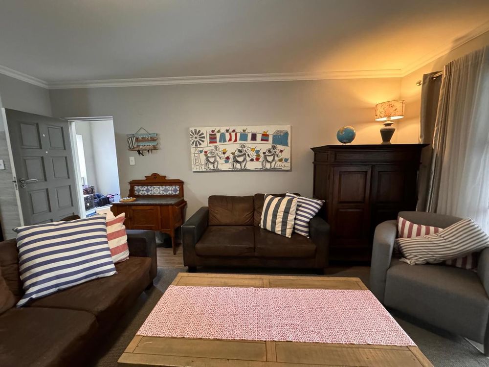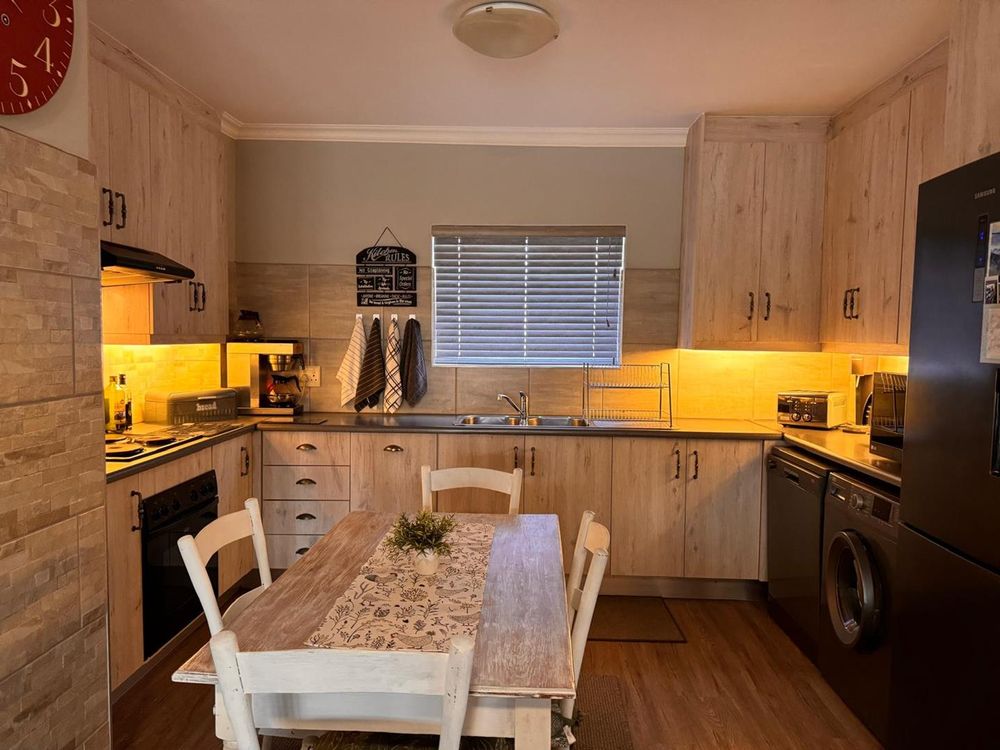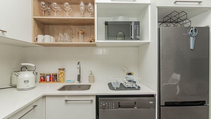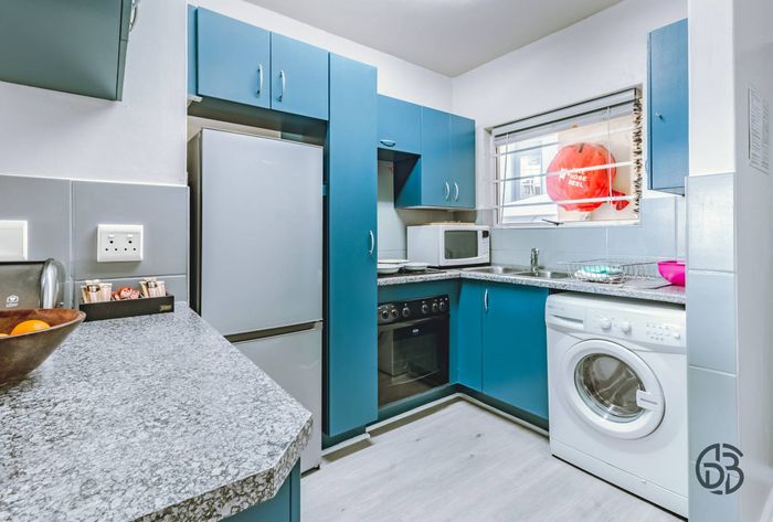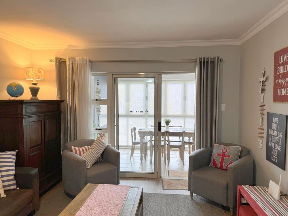 Step inside to find a meticulously designed space, complete with all the furniture, modern appliances, cutlery, linen, and decor you need to feel right at home. The heart of the apartment is the modern kitchen, which boasts ample cupboards and seamlessly flows into an open-plan living area. This inviting space extends onto an enclosed braai balcony, complete with a stainless steel braai, perfect for entertaining guests or enjoying quiet evenings at home.