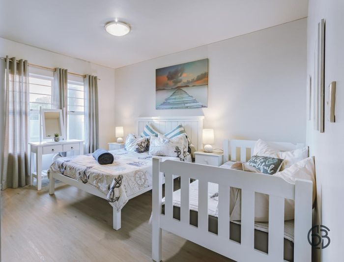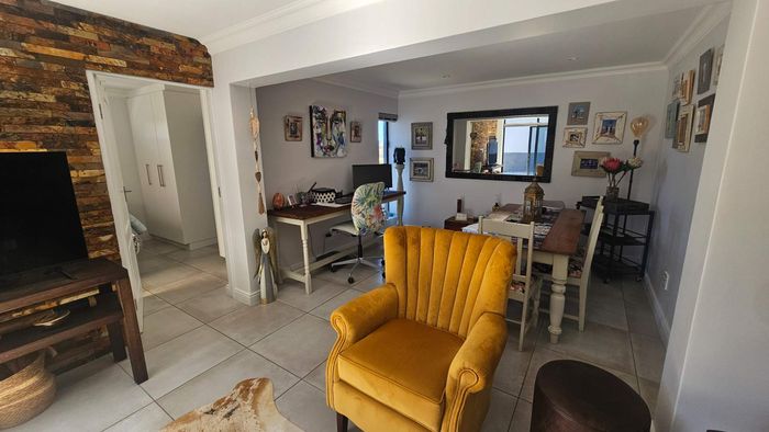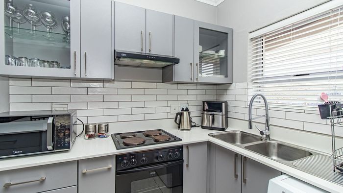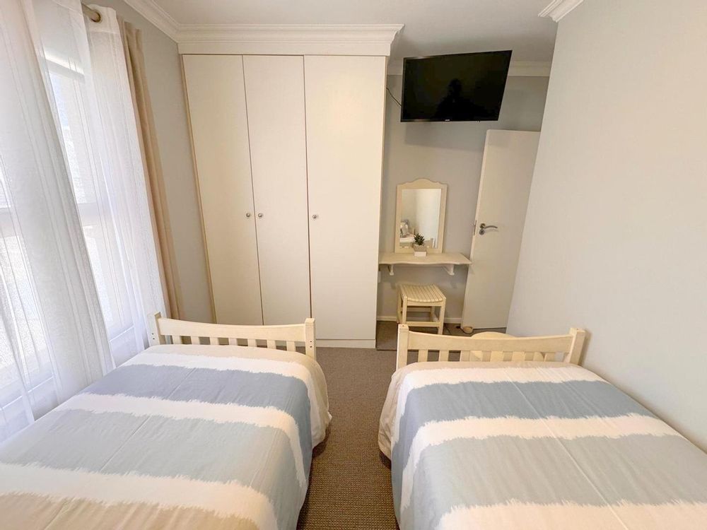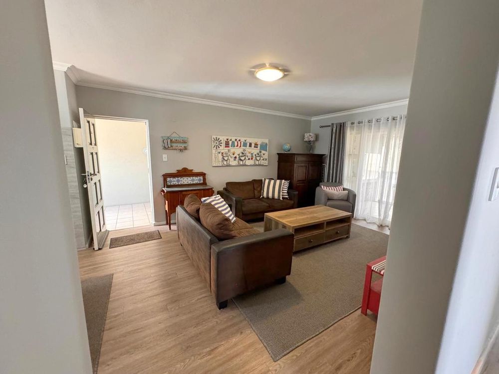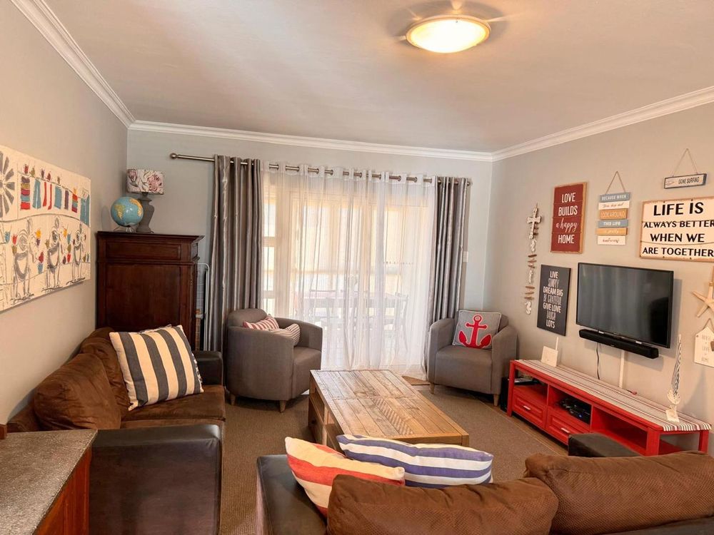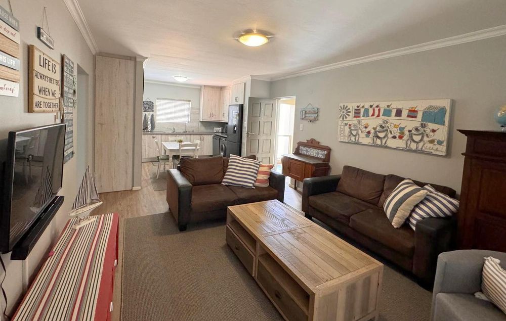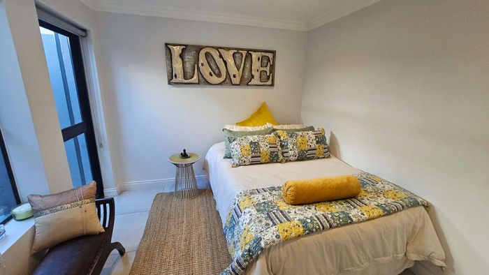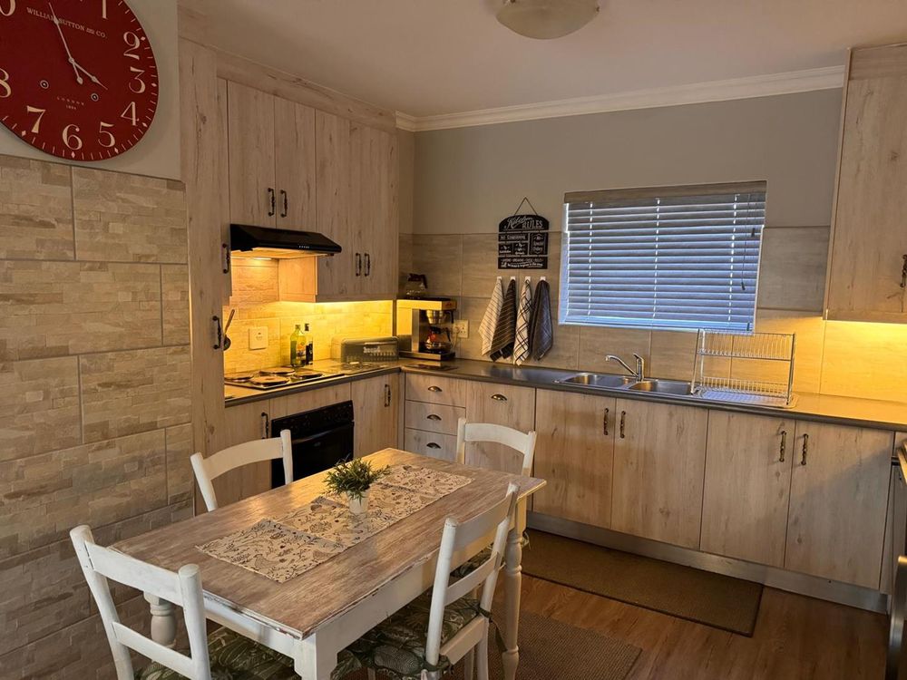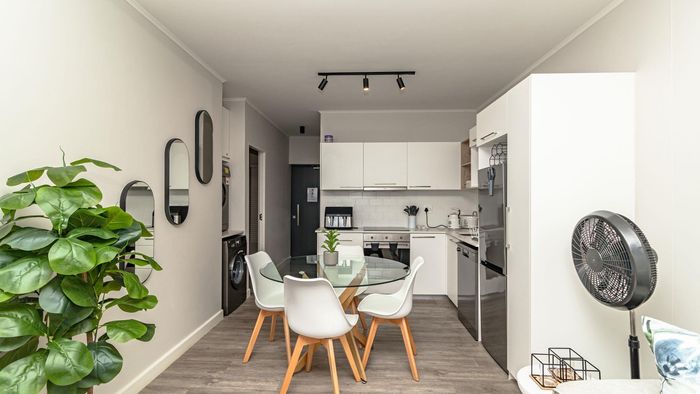 Step inside to find a meticulously designed space, complete with all the furniture, modern appliances, cutlery, linen, and decor you need to feel right at home. The heart of the apartment is the modern kitchen, which boasts ample cupboards and seamlessly flows into an open-plan living area. This inviting space extends onto an enclosed braai balcony, complete with a stainless steel braai, perfect for entertaining guests or enjoying quiet evenings at home.