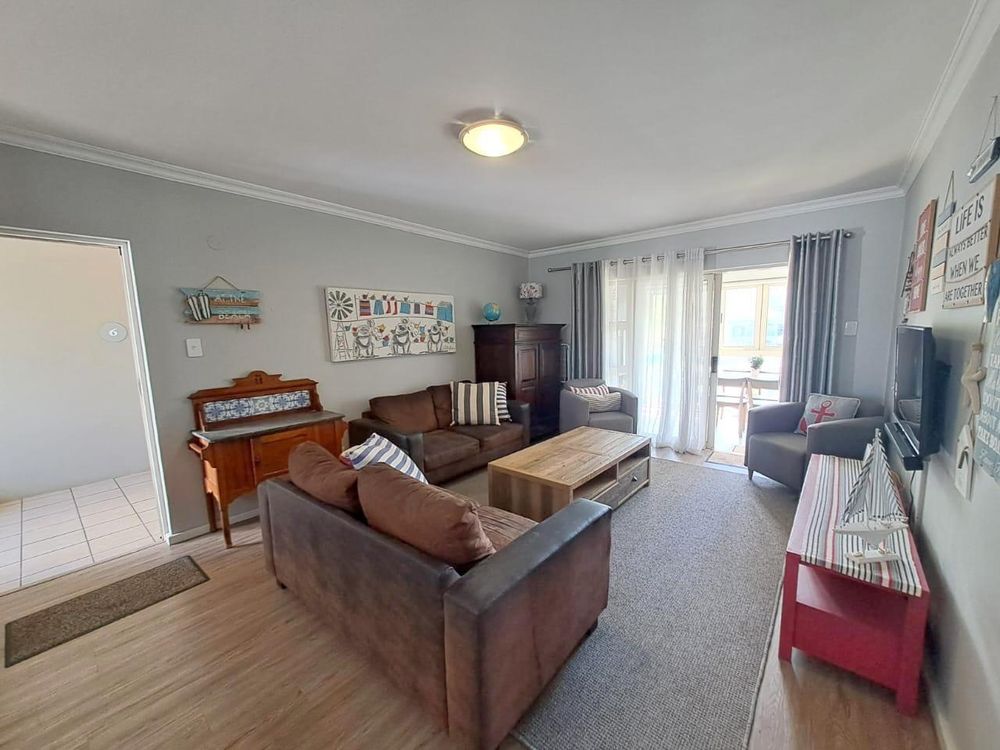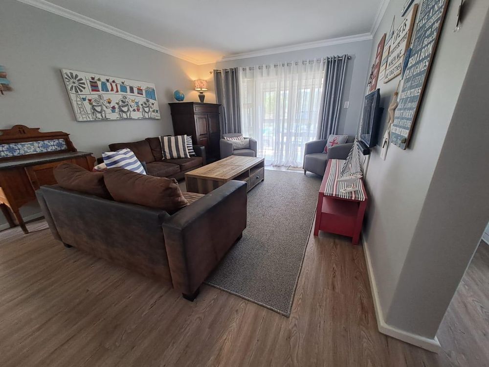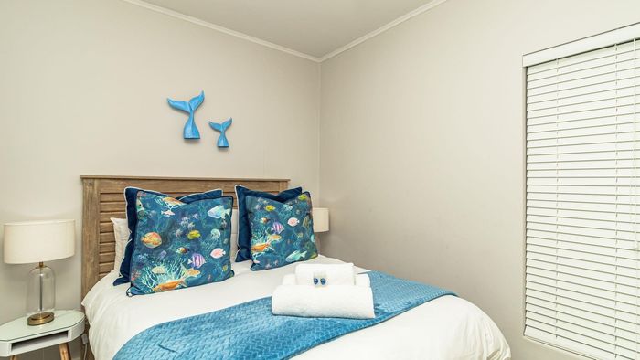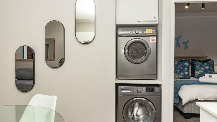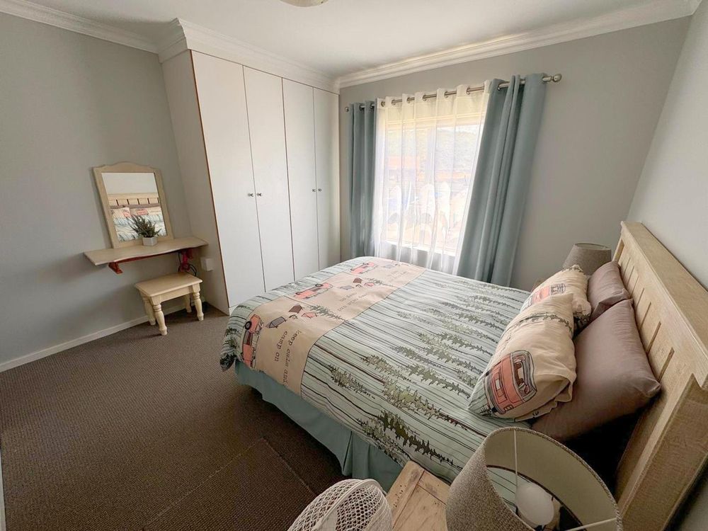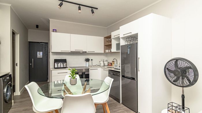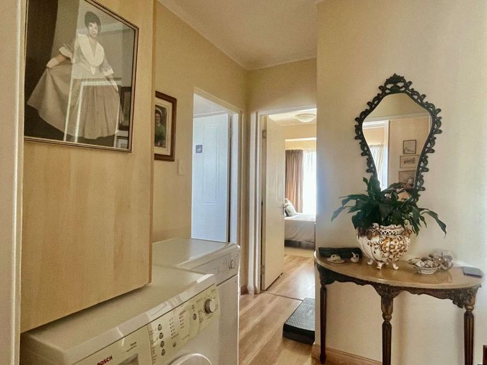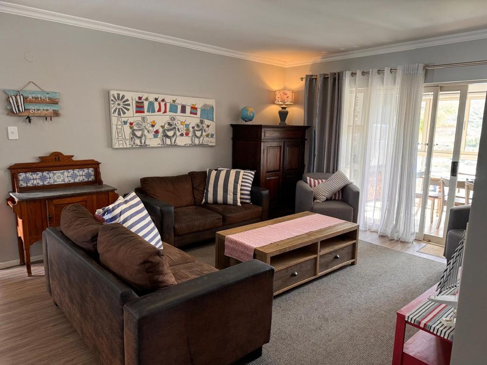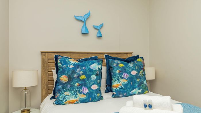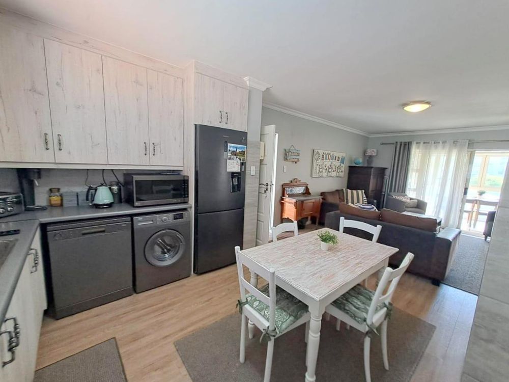 Step inside to find a meticulously designed space, complete with all the furniture, modern appliances, cutlery, linen, and decor you need to feel right at home. The heart of the apartment is the modern kitchen, which boasts ample cupboards and seamlessly flows into an open-plan living area. This inviting space extends onto an enclosed braai balcony, complete with a stainless steel braai, perfect for entertaining guests or enjoying quiet evenings at home.