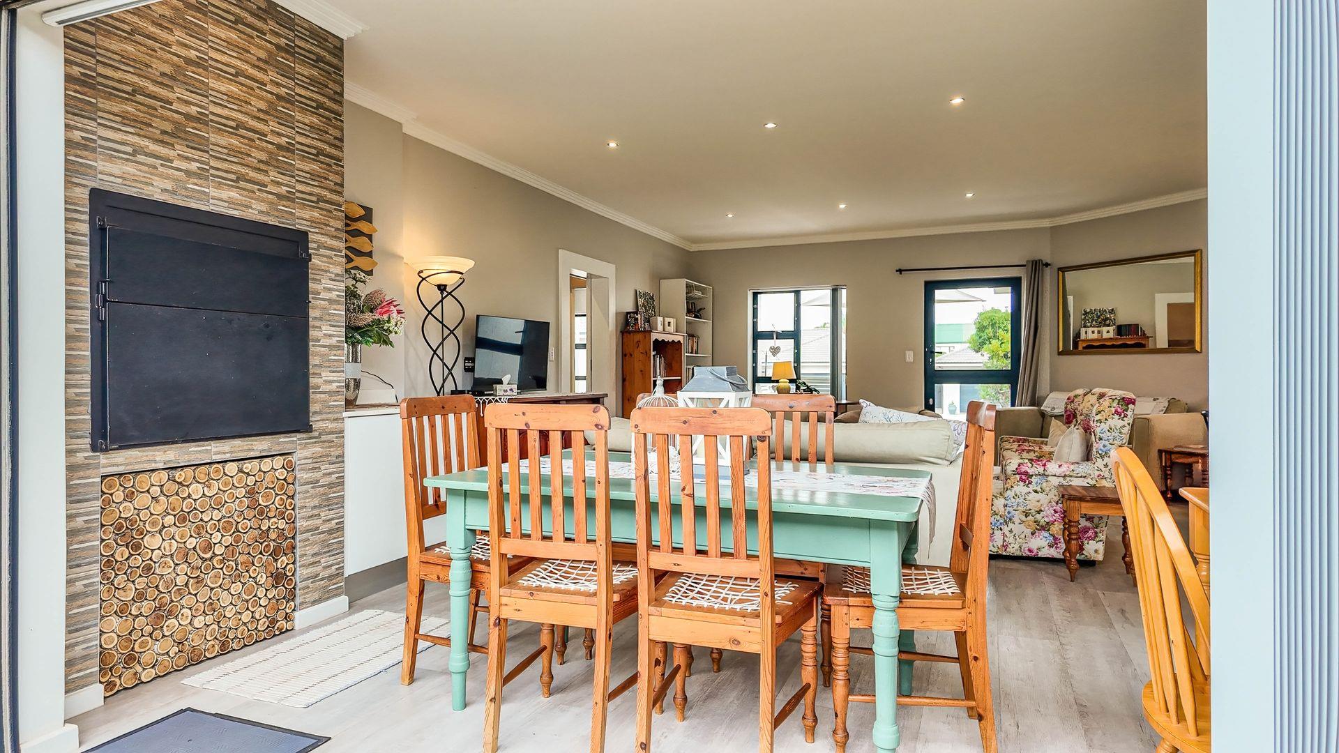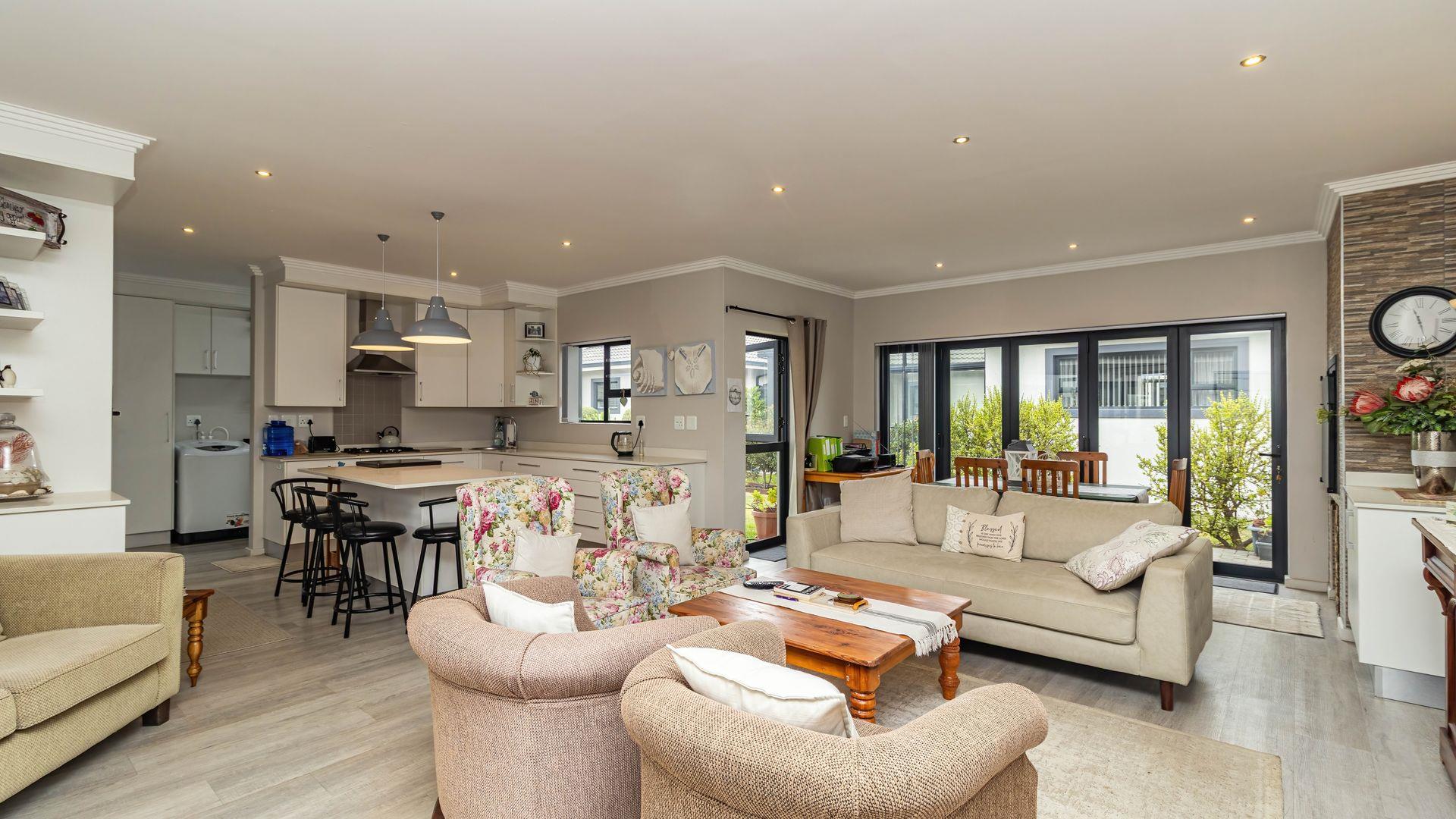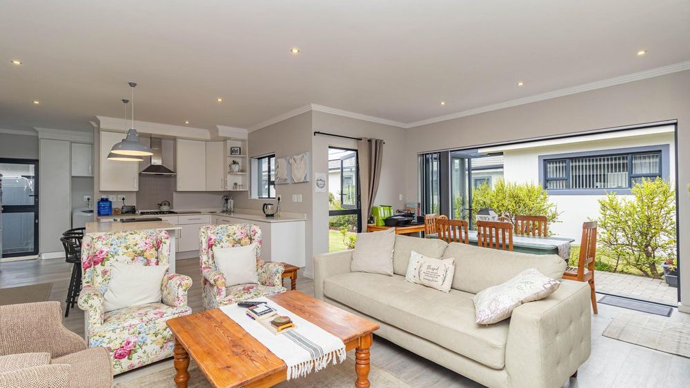 Discover this stunning, well-designed, single-level home—a true hidden gem that promises coziness and comfort. Upon entering through the front door, you'll be greeted by a spacious and open-plan living area, complete with indoor braai facilities. The stag doors open to a lovely outdoor area, overlooking a lush grassy expanse.