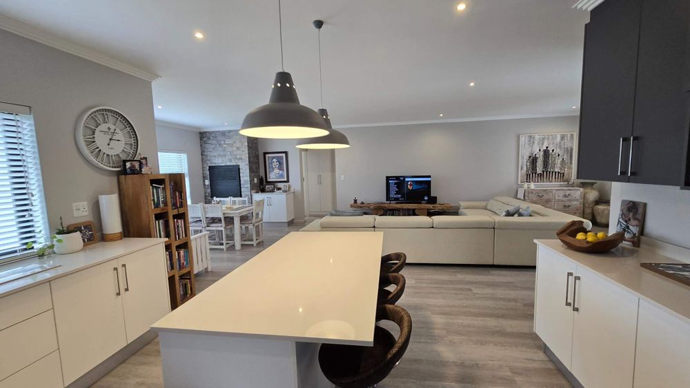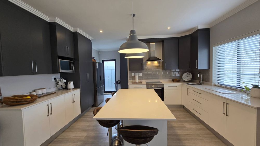 This modern, immaculate 3-bedroom house epitomizes refined living. Featuring an open-plan living area with elegant vinyl flooring, a well-equipped scullery, two bathrooms, and a double garage, this home is tailored for a convenient lock-up-and-go lifestyle. Experience seamless indoor-outdoor flow, quality finishes, and spacious interiors that make everyday living effortless.