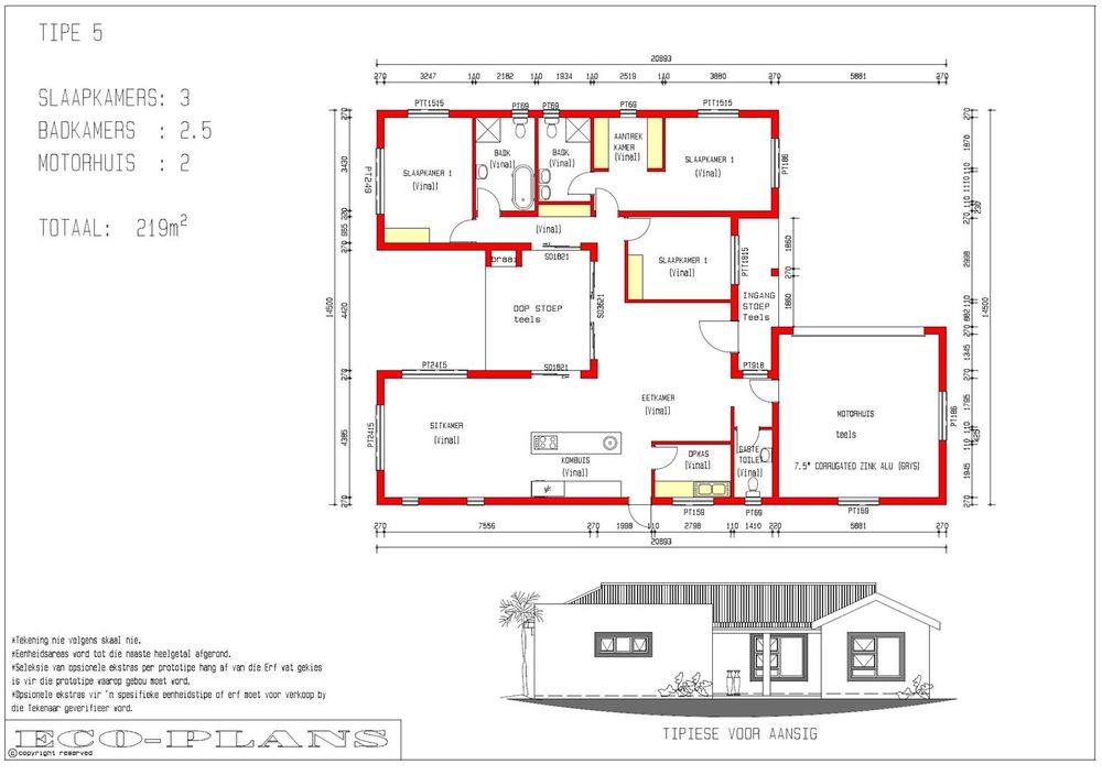 - Plan Type 5: R3,885,000 (219m2, 3 bedrooms, 2 bathrooms, 2 garages)
