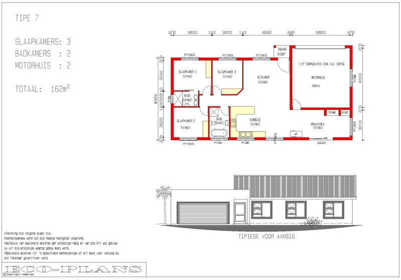 - Plan Type 7: R3,210,000 (162m2, 3 bedrooms, 2 bathrooms, 2 garages)