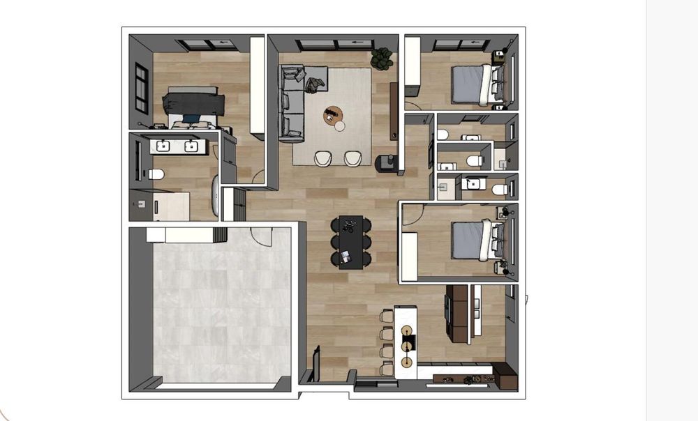 The property is thoughtfully designed with high-end bespoke finishes that cater to modern tastes and preferences. An open-plan living room flows seamlessly into a state-of-the-art kitchen, equipped with a 4-burner gas hob and electric oven—perfect for culinary enthusiasts and family gatherings.