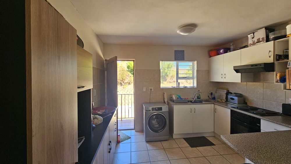 The property features two well-sized bedrooms and a bathroom, providing ample space for comfortable living. The open-plan living area seamlessly connects to the kitchen, creating a welcoming environment for family and friends. For those who enjoy entertaining, the inside braai adds a unique touch to the home.