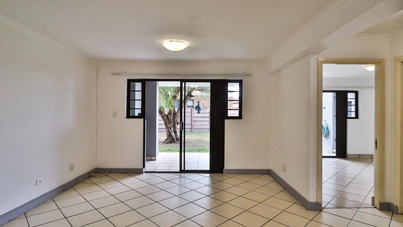 The open-plan living area seamlessly flows onto a spacious verandah, perfect for entertaining or relaxing. From the verandah, enjoy direct access to lush green grass and a designated braai area, creating an inviting outdoor space for gatherings and leisure.