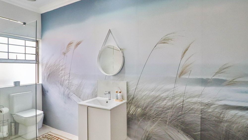 Inside, you'll find a spacious open-plan living area with a dining room and modern kitchen, complete with a comfortable scullery. The home features three bedrooms and three bathrooms, providing ample space for family and guests. Additional conveniences include an automated double garage and gate, 12 solar panels, two gas geysers, and one electric geyser.