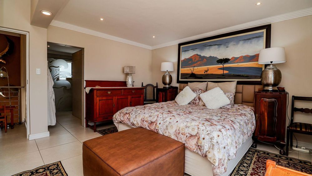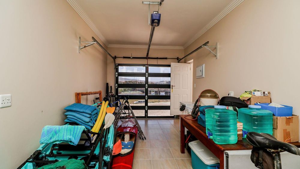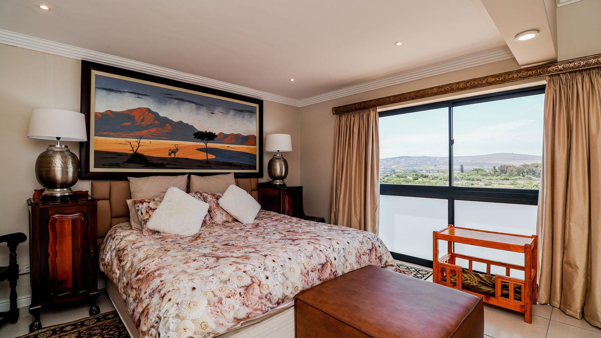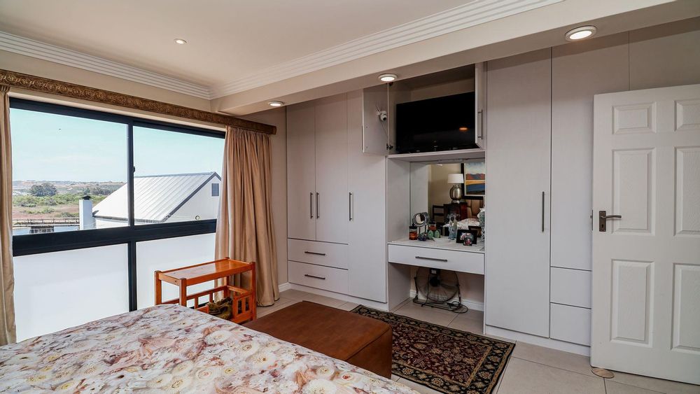 Upstairs, you will find three spacious bedrooms and two modern bathrooms. The master bedroom is a true retreat, offering breathtaking views of the majestic mountains and the tranquil Hartenbos River.