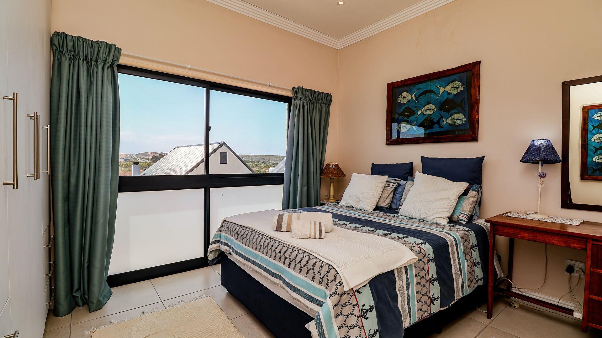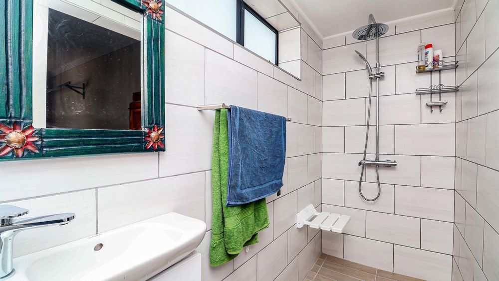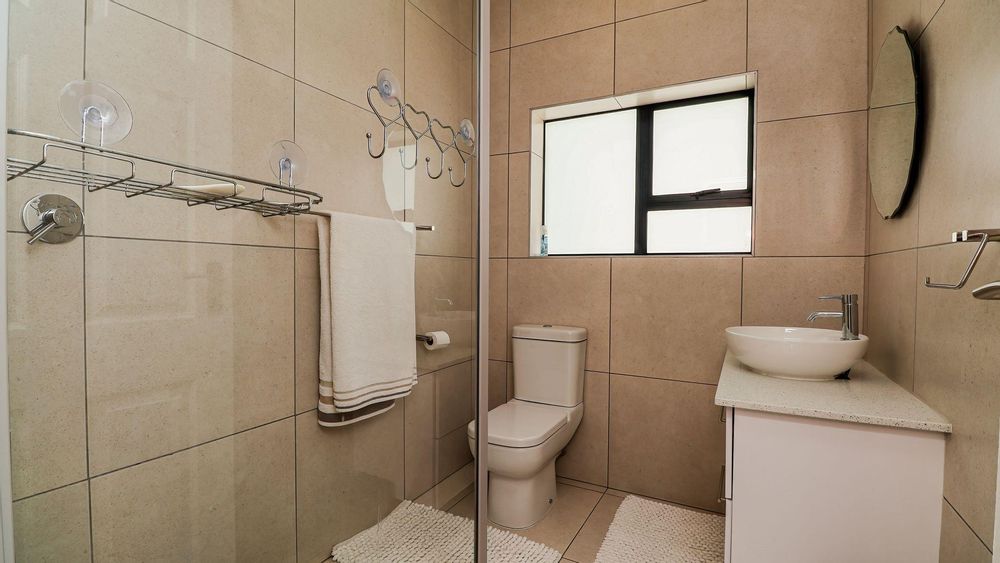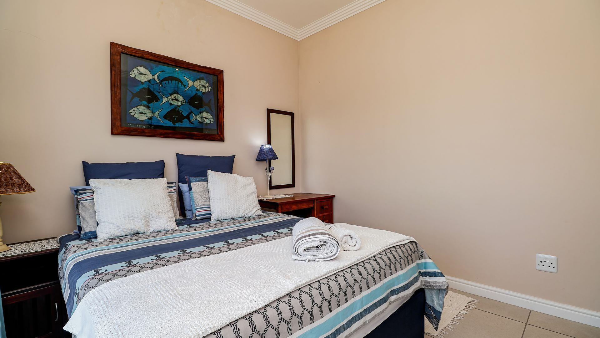 Upstairs, you will find three spacious bedrooms and two modern bathrooms. The master bedroom is a true retreat, offering breathtaking views of the majestic mountains and the tranquil Hartenbos River.
