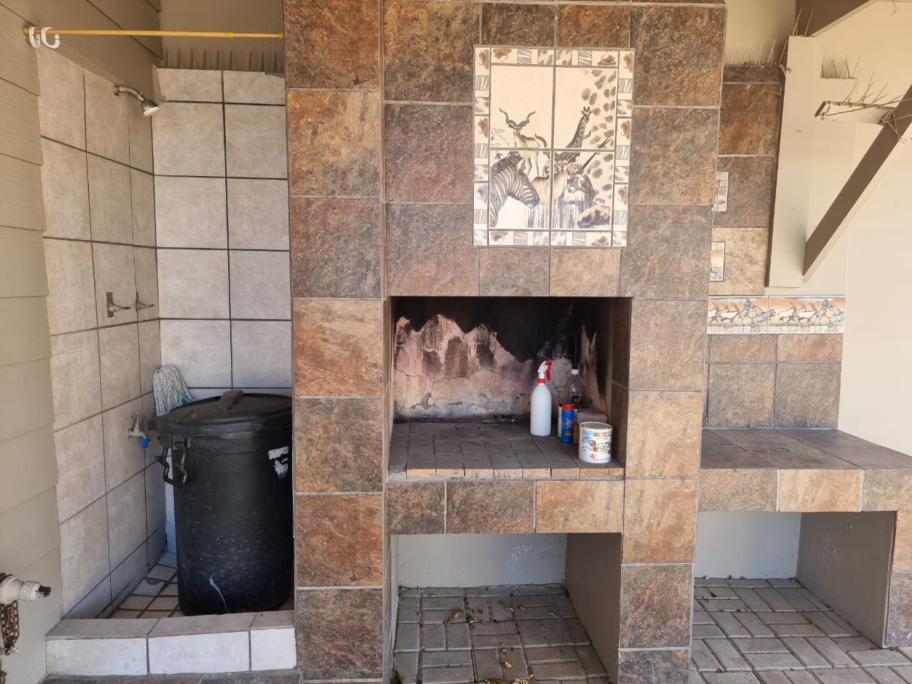 Upstairs, you'll find the second bedroom, accompanied by a half bathroom, ensuring privacy and comfort for guests or family members. The property also features a double carport, offering ample parking space for two vehicles. Additionally, this space doubles as an entertainment area with a built-in braai, perfect for hosting gatherings and enjoying endless barbecues.