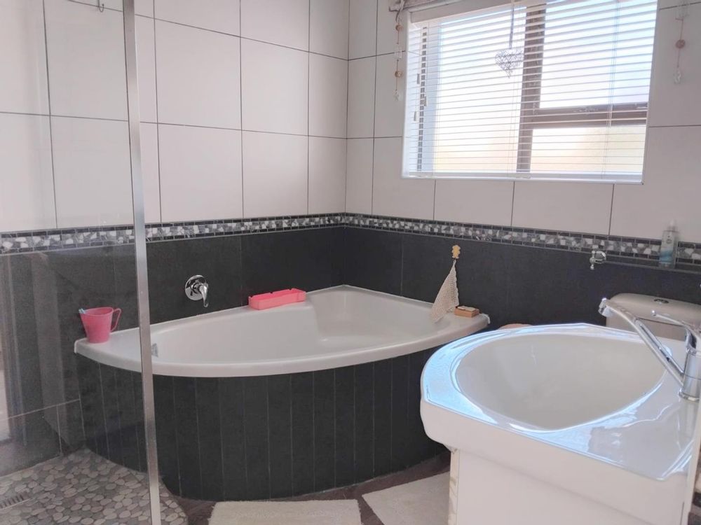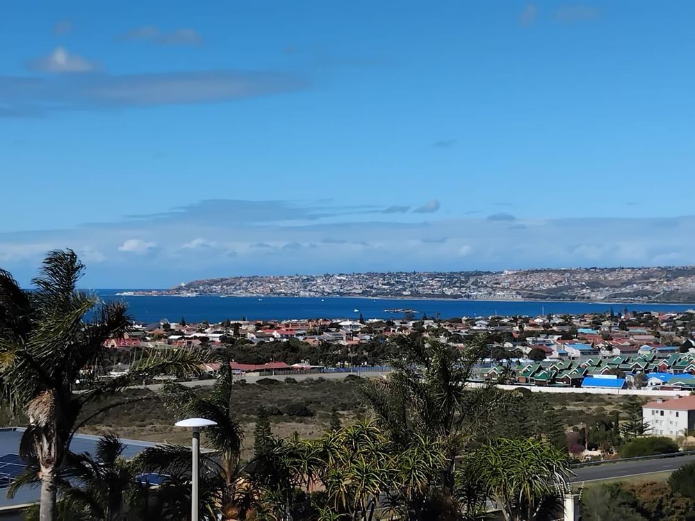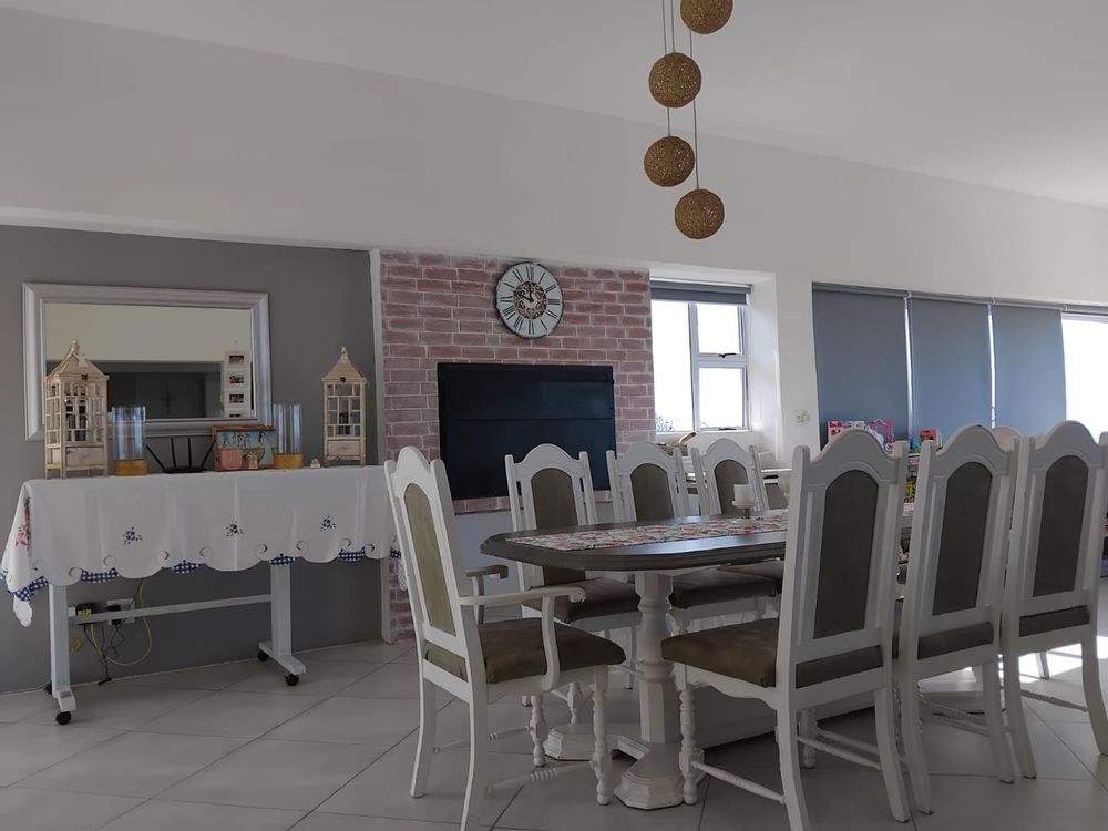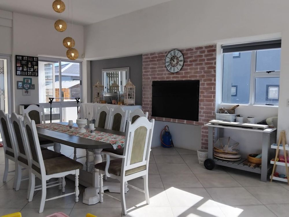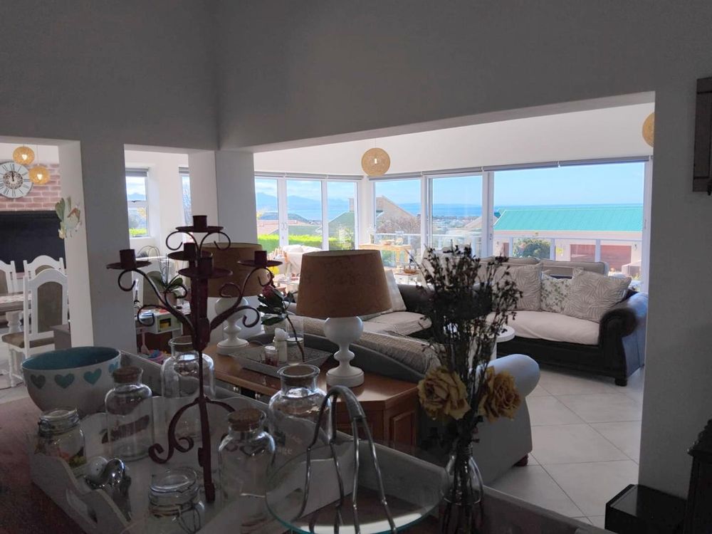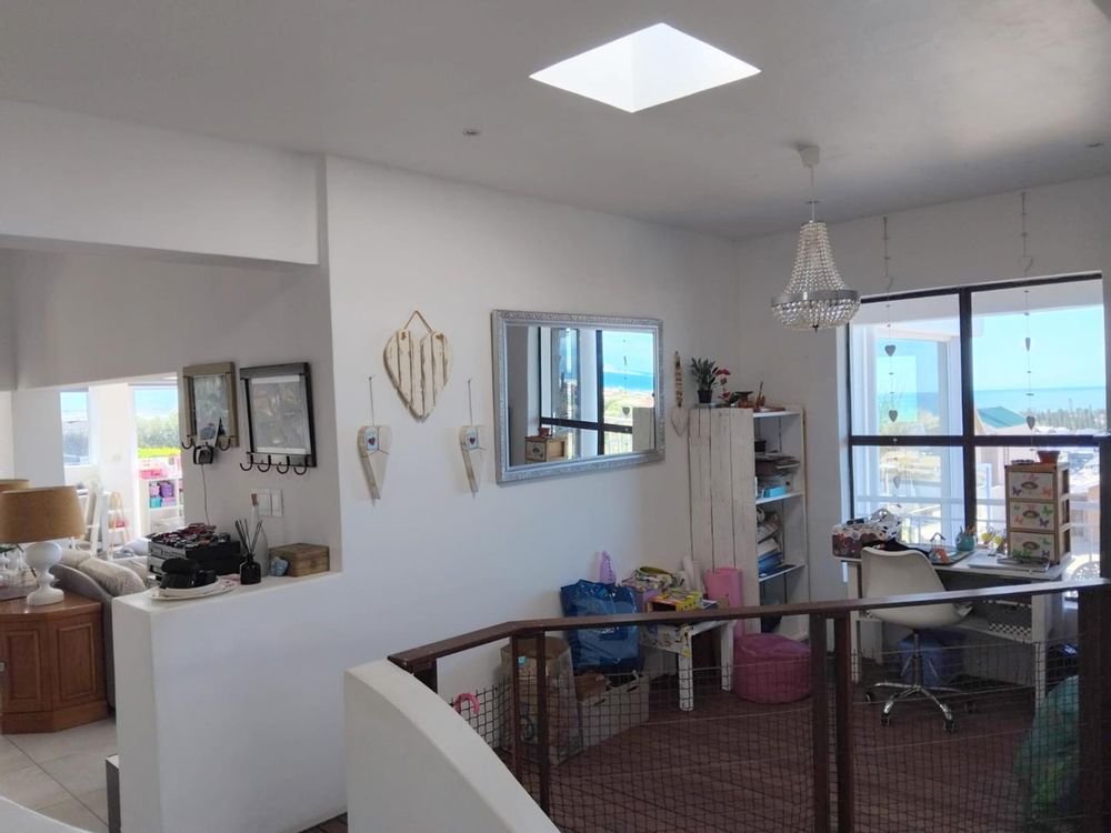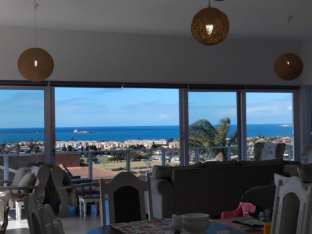This immaculate home offers breathtaking ocean and mountain views that will captivate you from the moment you step inside. The upper level features a modern open-plan kitchen, complete with built-in cupboards, a gas stove, an electric oven, and a separate scullery. The kitchen flows seamlessly into a spacious dining area, an elegant lounge, and an expansive braai room. Each space is designed to maximize panoramic vistas of the ocean, Hartenbos, Mossel Bay with The Iconic Point, and the surrounding mountains. Sliding doors open onto the balcony, creating a perfect setting for relaxation or entertaining.