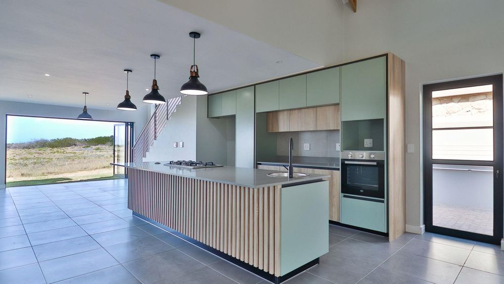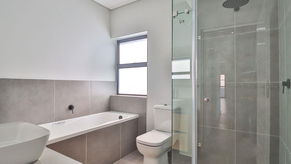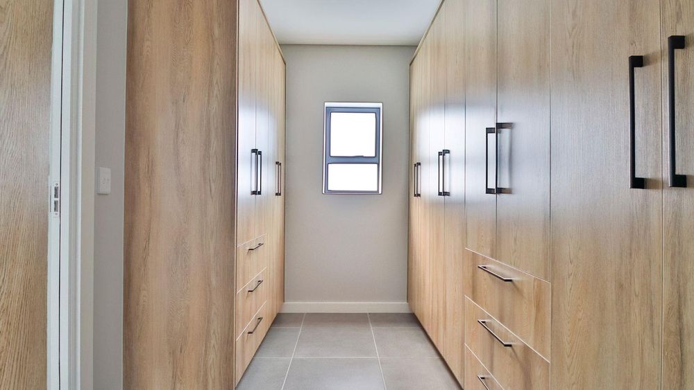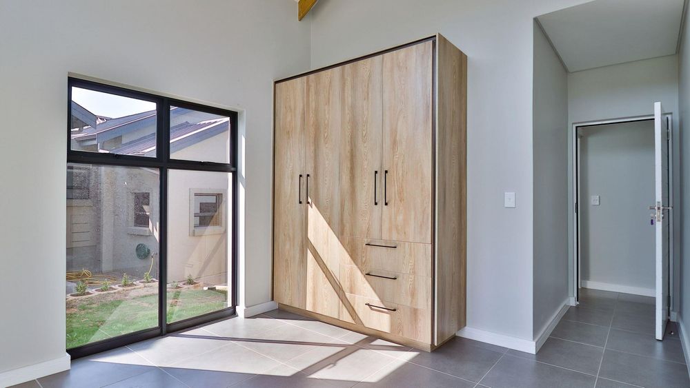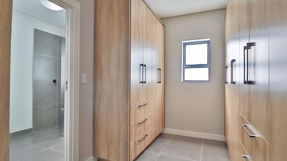 The modern kitchen is a chef’s dream, boasting ample cupboard space, sleek granite countertops, and top-of-the-line Smeg appliances, including a gas hob. A separate scullery adds to the practicality of this well-designed space. Step outside to discover a generous backyard, beautifully complemented by a green belt view in front of the house, offering a serene escape into nature.