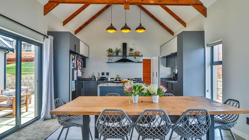 Our architect-designed homes boast stunning open-plan living areas that seamlessly extend to open verandahs with covered braai facilities. This home is a unique masterpiece, offering modern kitchens and distinctive style and finishes that cater to contemporary family living. Plus, your furry friends are welcome with fenced yards designed for their enjoyment.