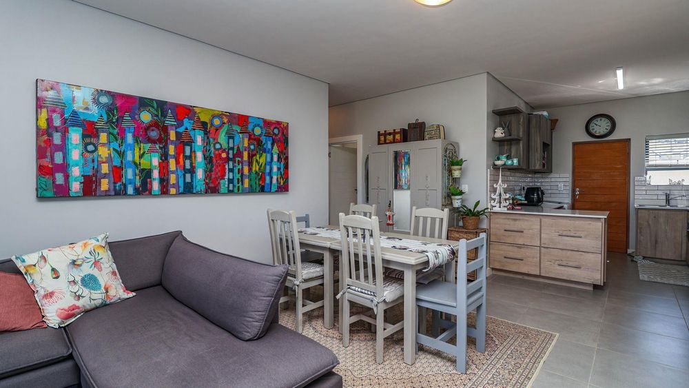 Situated just 5 km from the beautiful Hartenbos Beach and a variety of amenities, Hartland Estate seamlessly blends convenience with natural beauty. The cozy, single-level home is flooded with sunlight, featuring spacious rooms that exude a warm and inviting ambiance. The open-plan living area effortlessly flows into the outdoor braai space, offering breathtaking views that become even more magical as the day transitions into night and a bonus of a greenbelt.