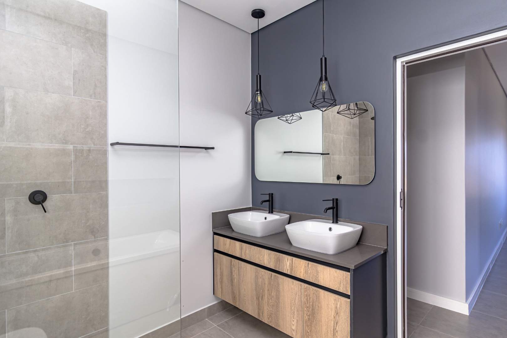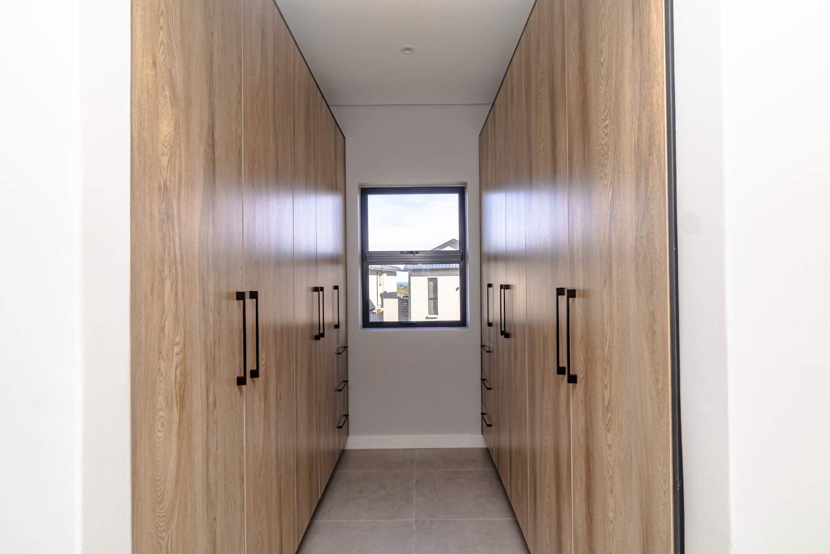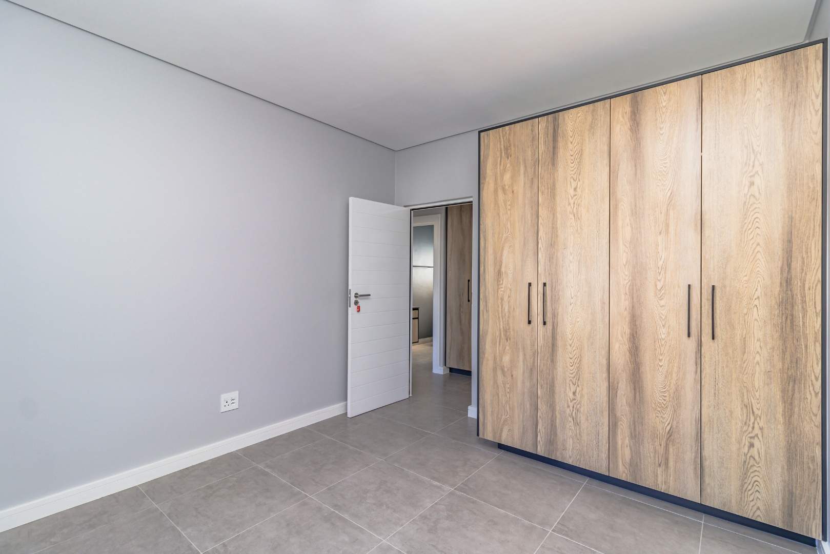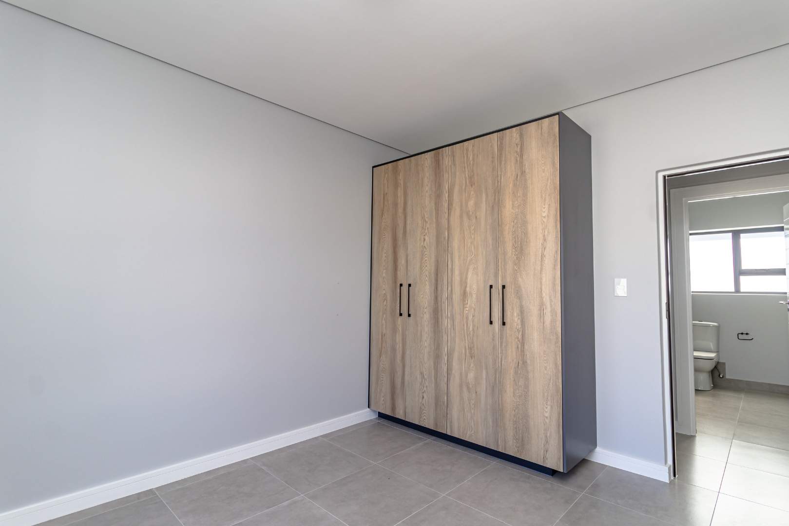 The open-plan living area also features an indoor braai area, making it ideal for entertaining guests regardless of the weather. The modern kitchen is a chef’s delight, equipped with a gas hob, electric oven, and ample cupboard space to cater to all your culinary needs.