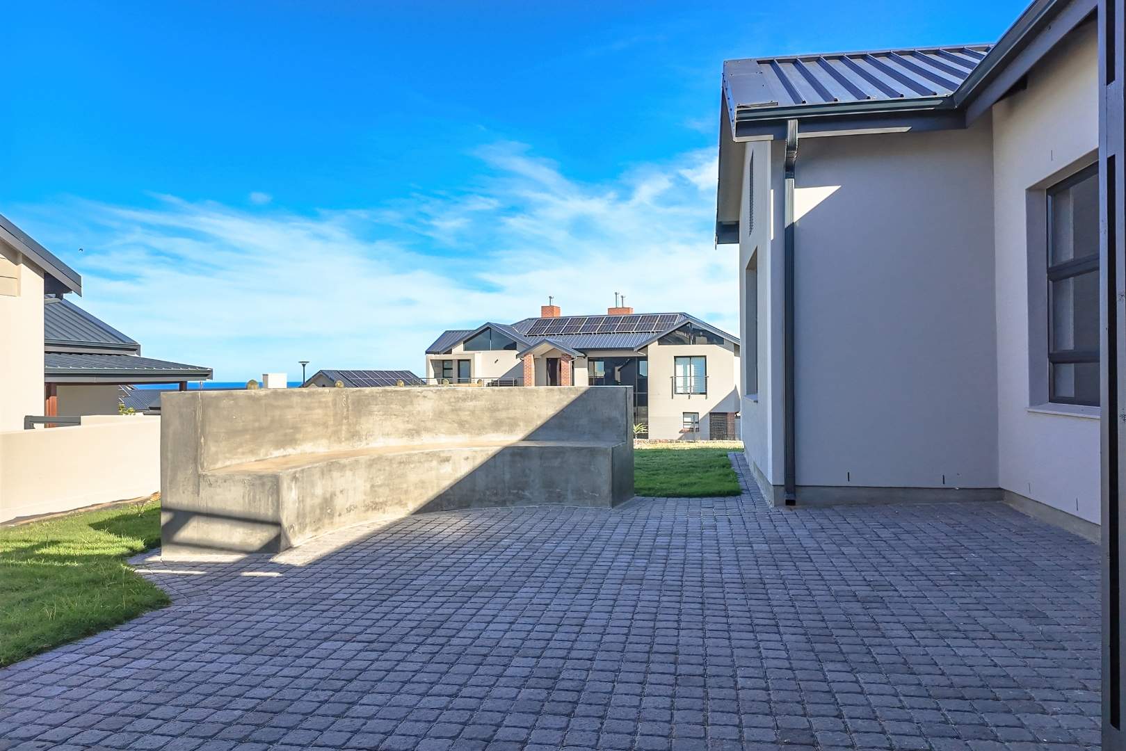 This exquisite house is strategically located on a corner stand, offering partial sea views that enhance its serene and picturesque setting.