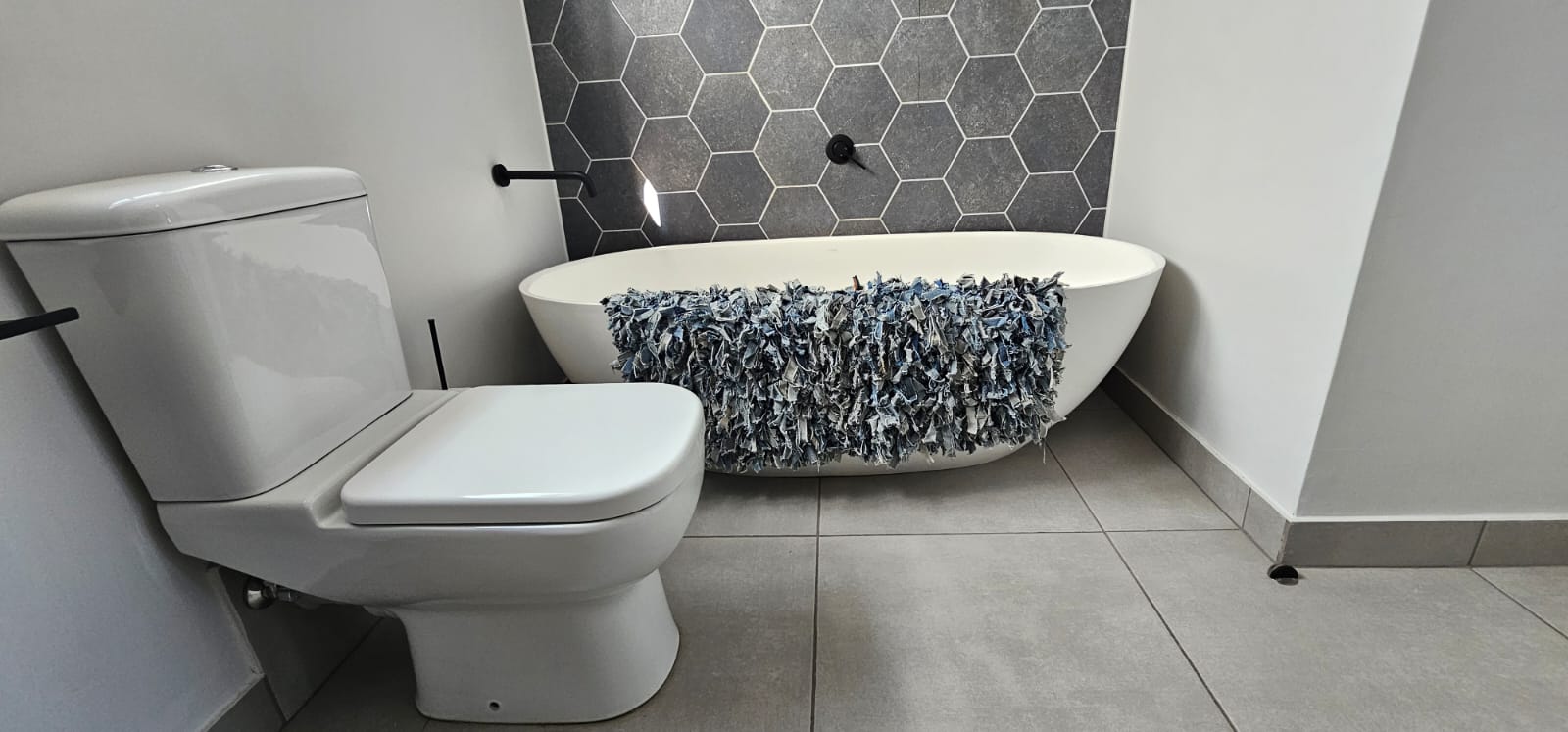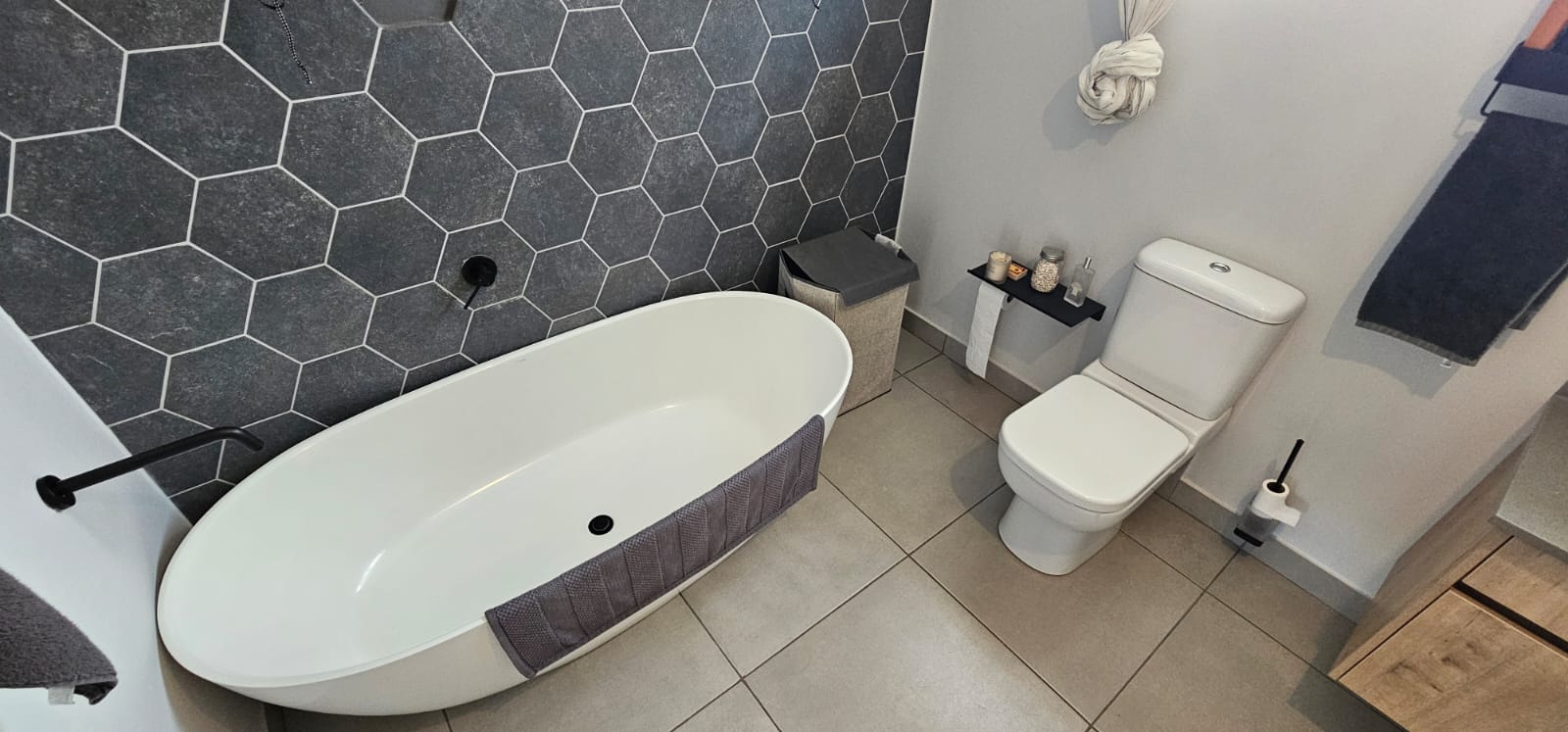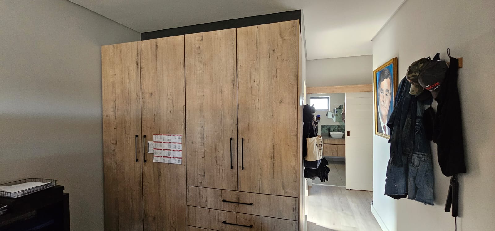 The home boasts spacious bedrooms, each equipped with built-in cupboards to optimize storage space. The main bedroom is particularly impressive, offering ample space and complete with a luxurious full en suite bathroom. The two additional bedrooms are well-served by a beautifully appointed general bathroom, ensuring both convenience and privacy for all residents.